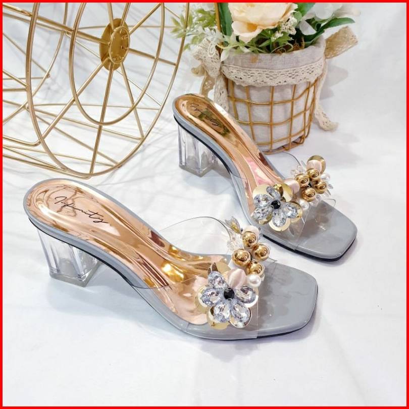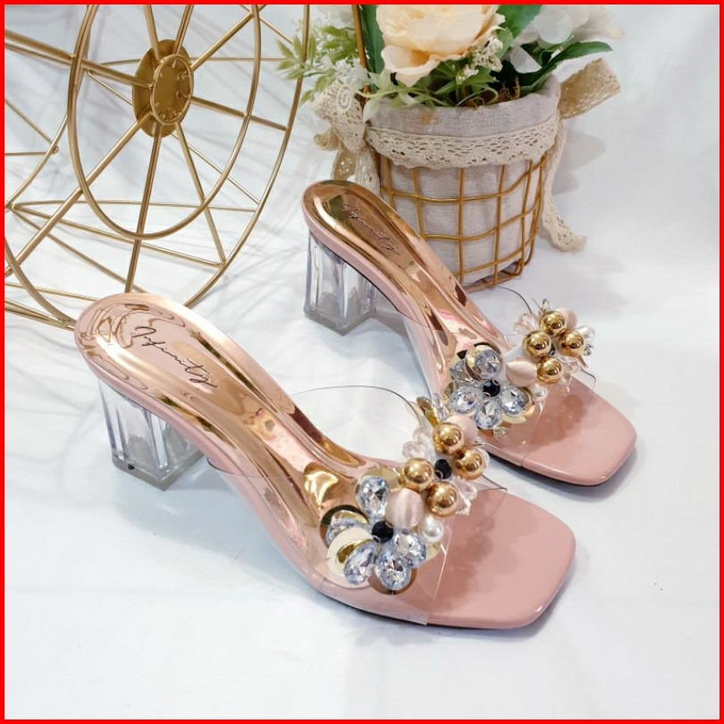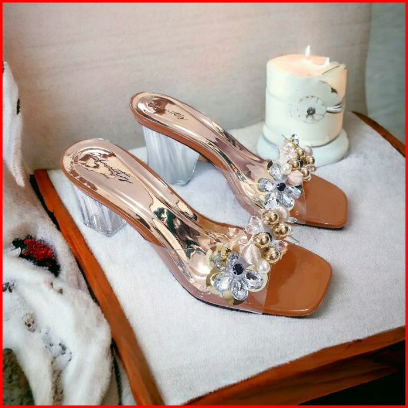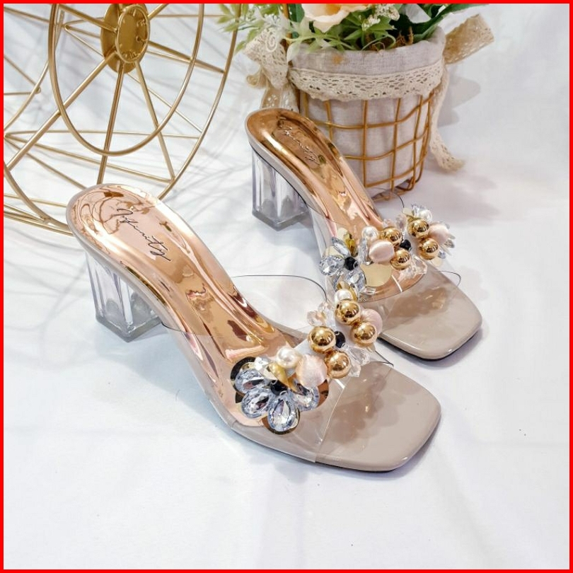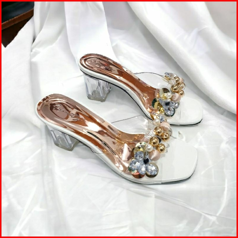Sandal Hak Kaca 7cm Jn 127 Mika Bening