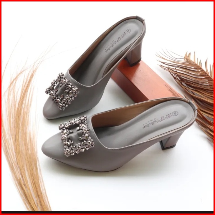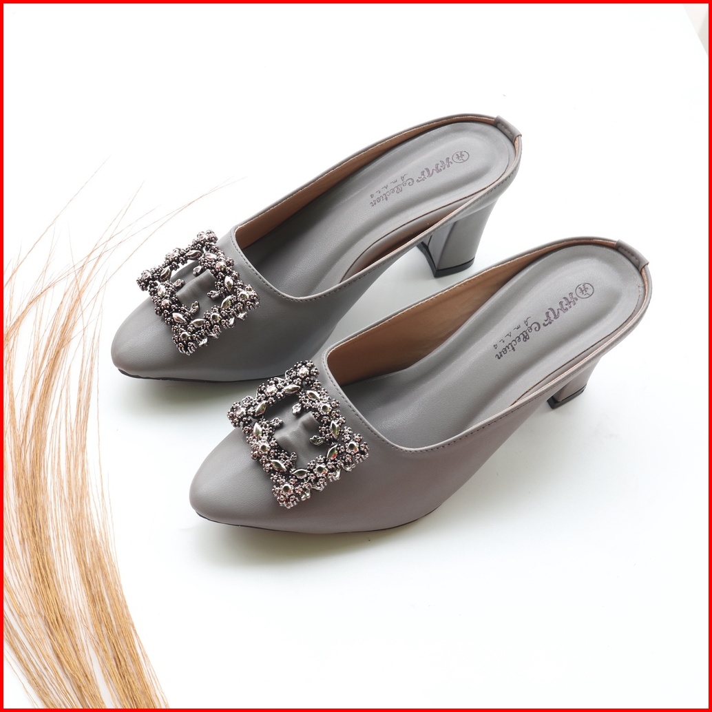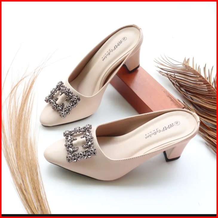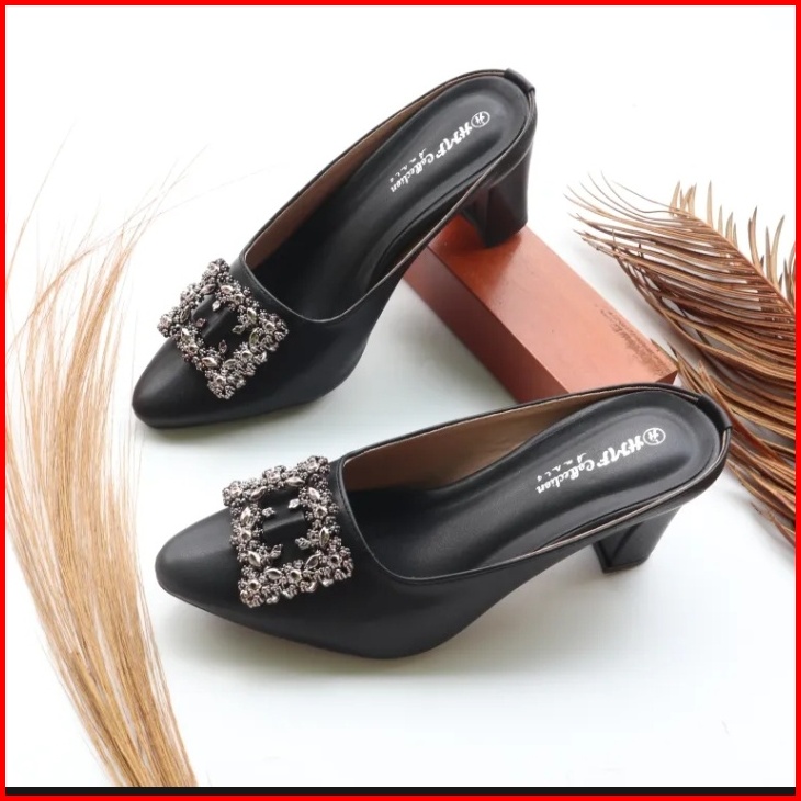 Hmf Yuiko Mules Wanita Kulit Sintetis 7 Cm