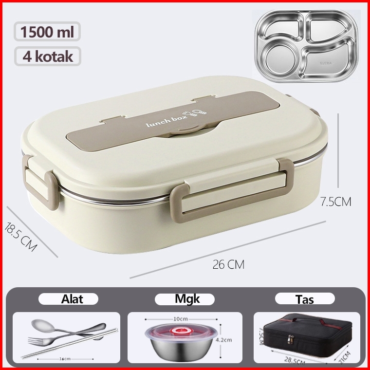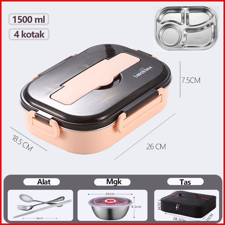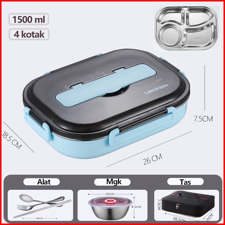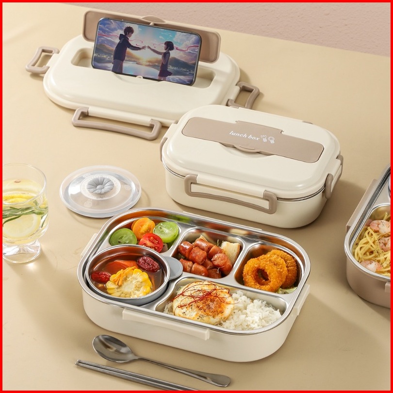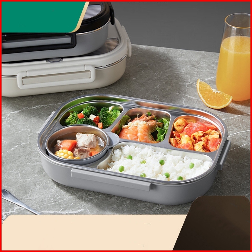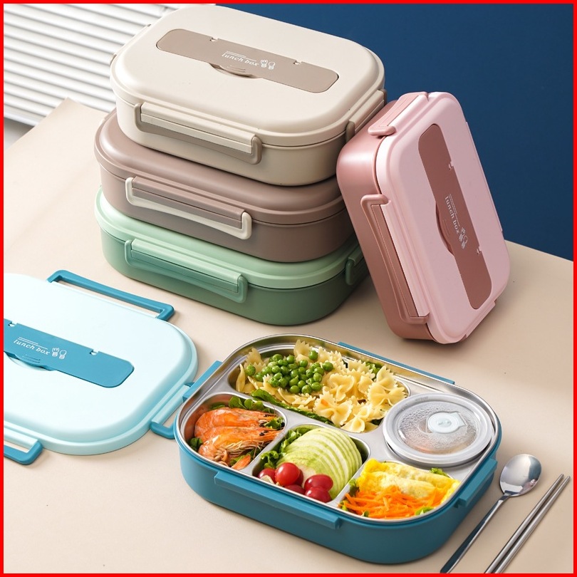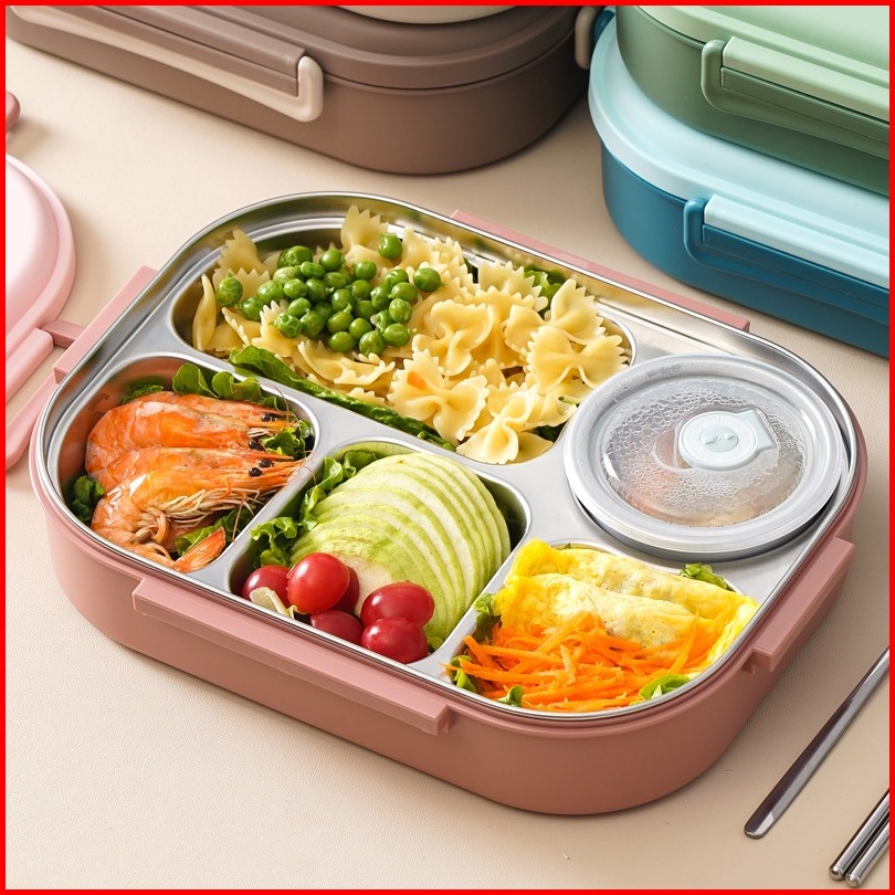 Lunch Box Kotak Makan 4 Grid 5 Grid Sus 304 Stainless Steel Lunch Box Stainless Tahan Panas Dan Anti Tumpah