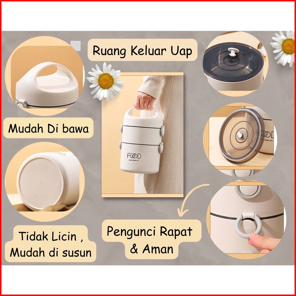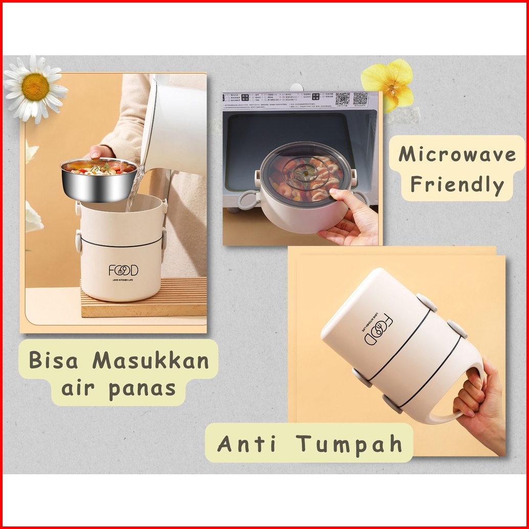 Rantang Makan Tahan Panas Rantang Susun Stainless Anti Tumpah Kedap Udara Tempat Makan Susun Free Tas Termos Sup Stainle