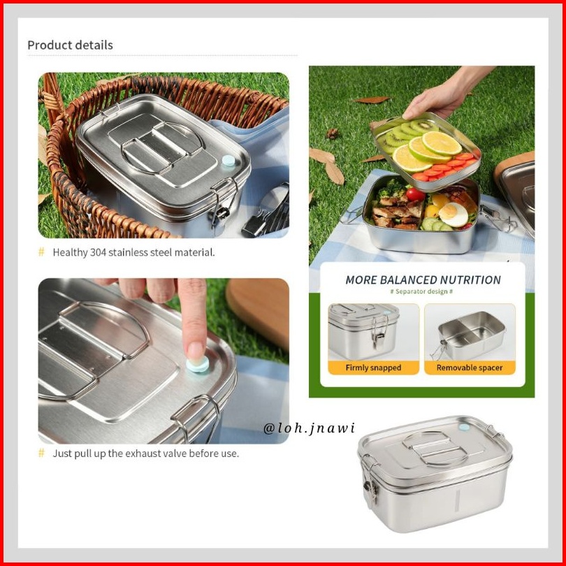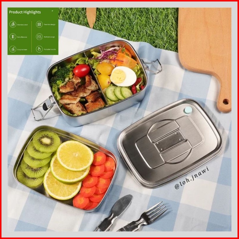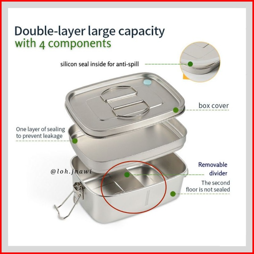 Lunch Box Stainless Steel 1500 Ml 2 Layers 4 Parts Premium