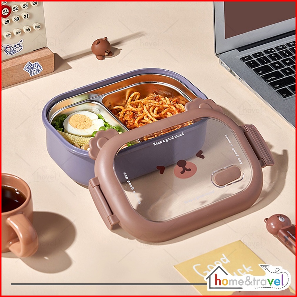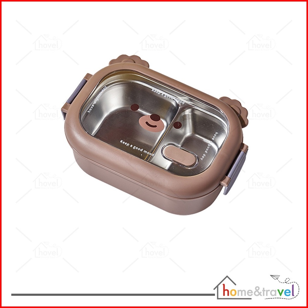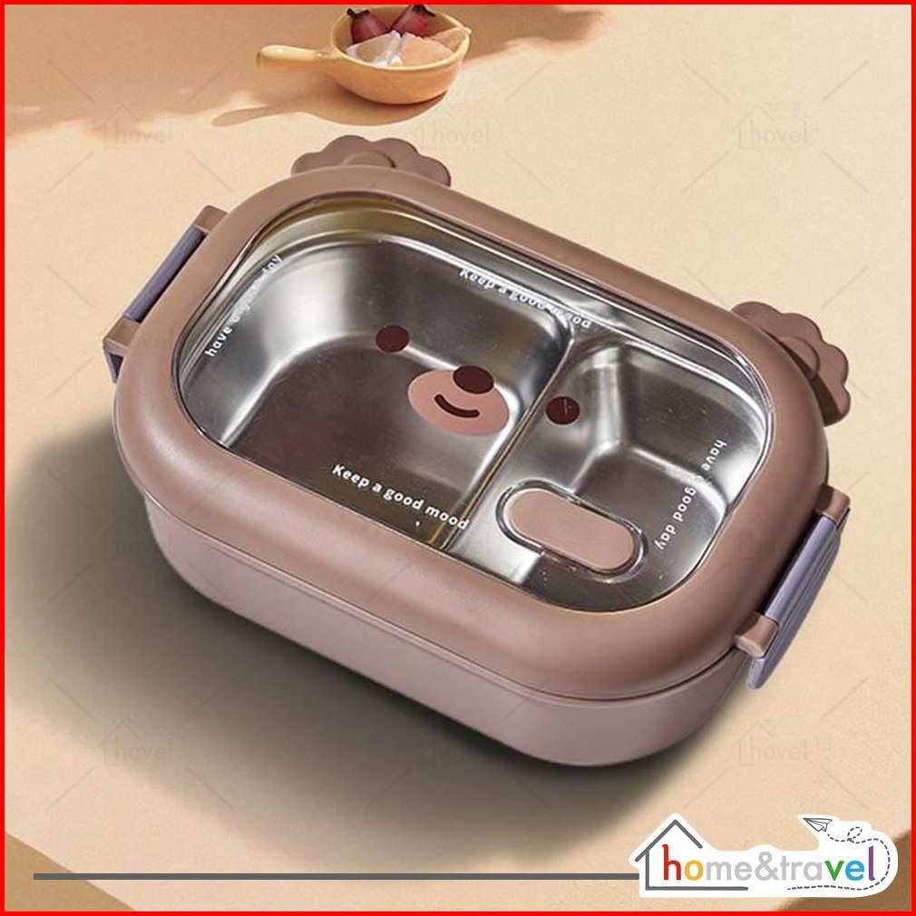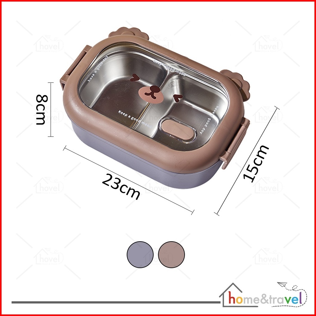 Hovelshop Tempat Bento Anak Bekal Makan Lucu Lunch Box Beruang Stainless Steel Karakter 2 Sekat