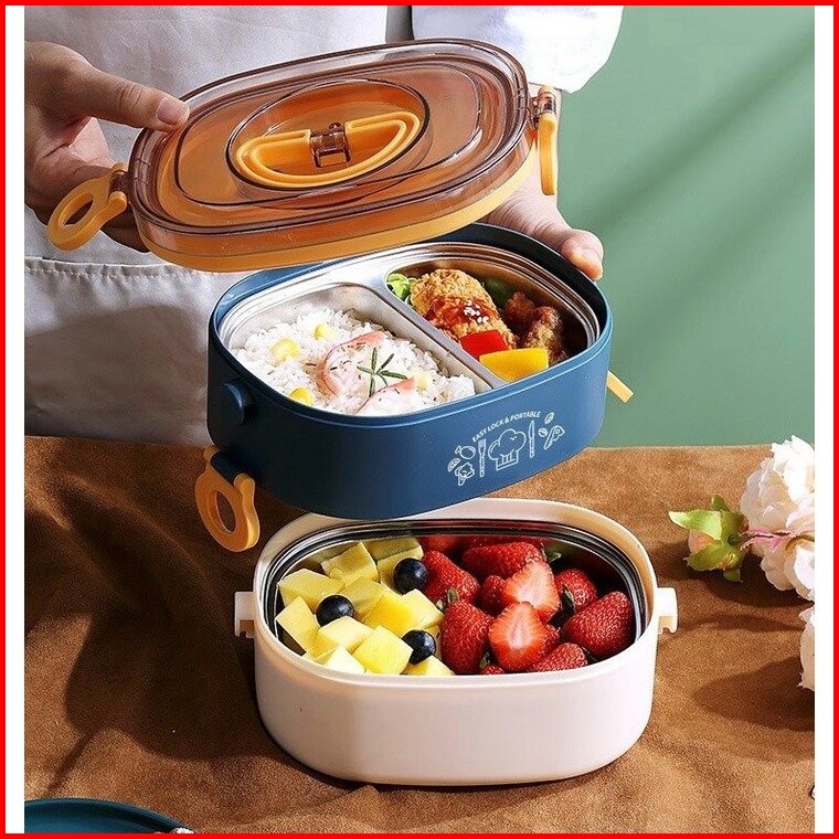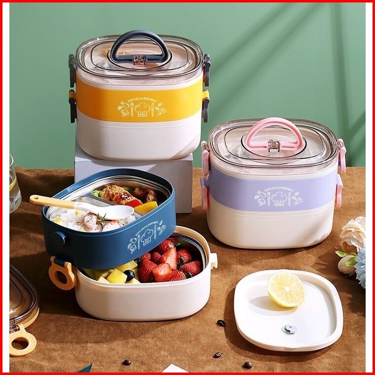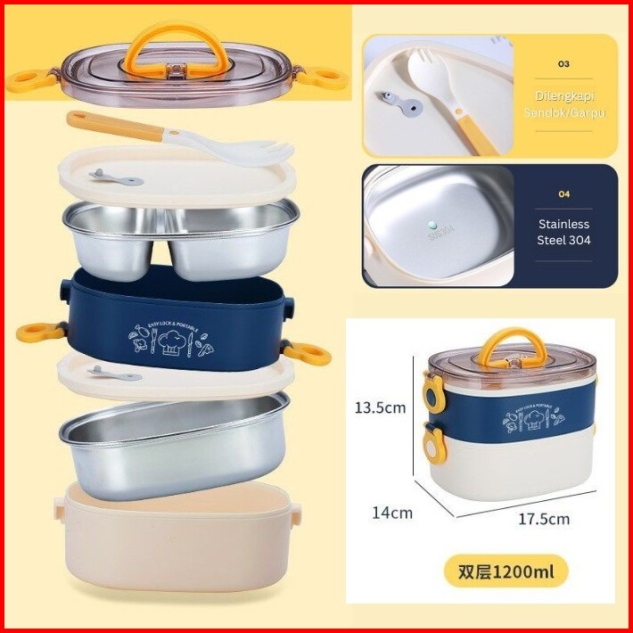 Lunch Box Kotak Makan Stainless Steel Dua Tingkat Dua Susun Sus304