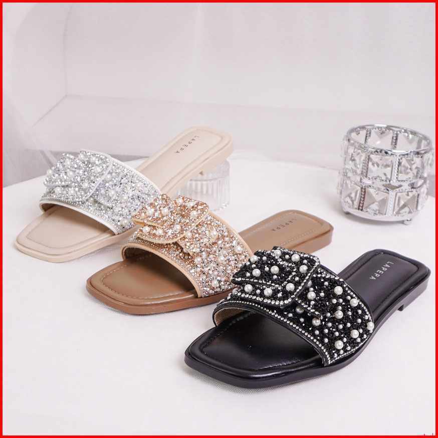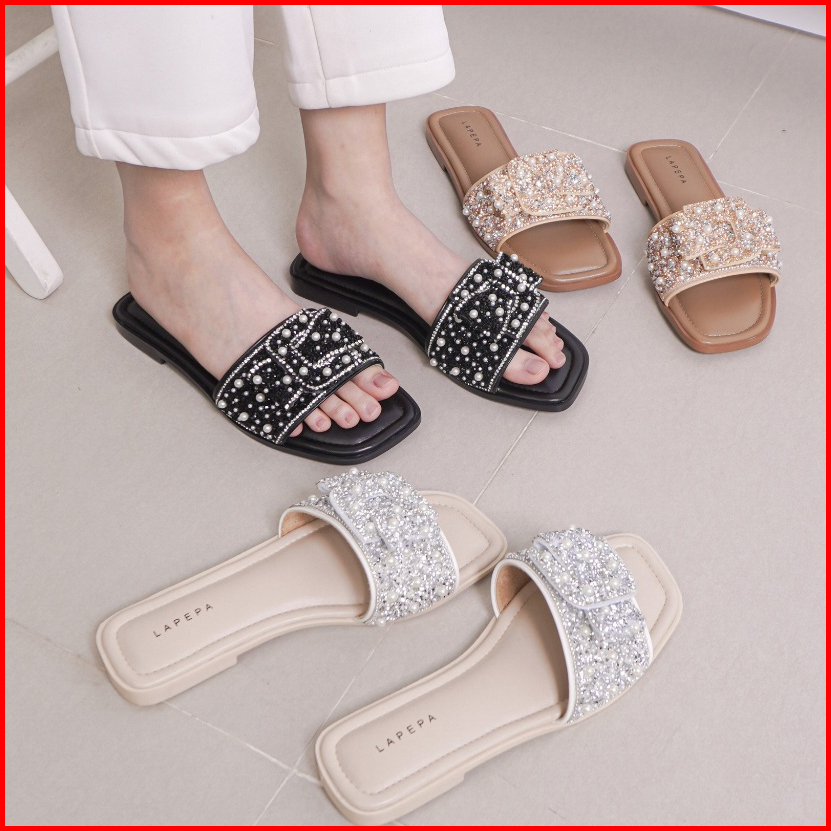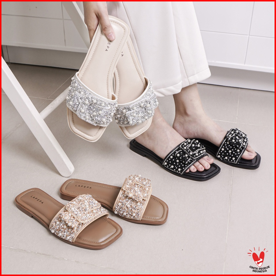 Lapepa Yuk - Nava Sandal Wanita Teplek Korea Casual Premium Size 36 - 41 Sendal Slop Empuk Flat Cewek Kasual Rumahan War