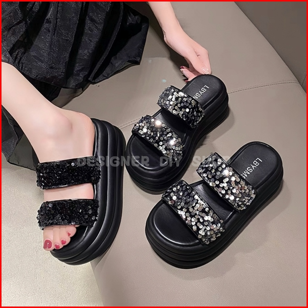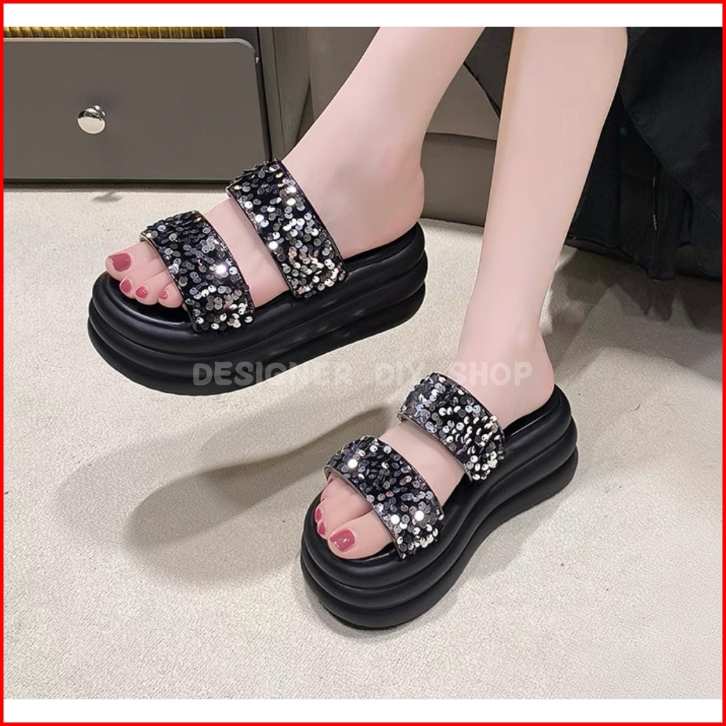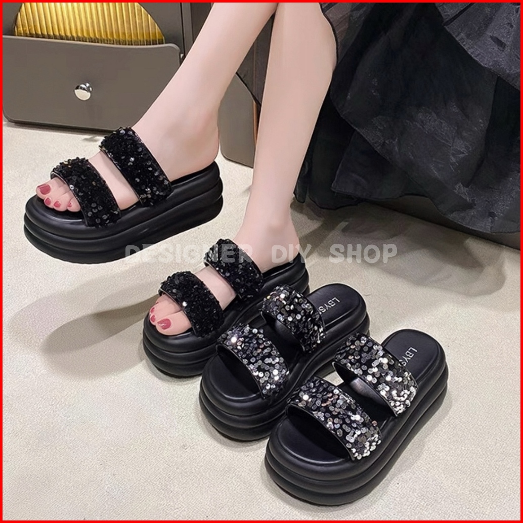 Diy New Sandal Wanita Wedges Slop Sendal Mewah Terbaru Tinggi 7cm Empuk Premium