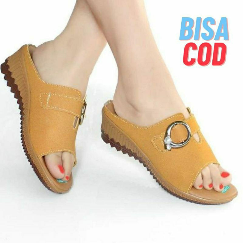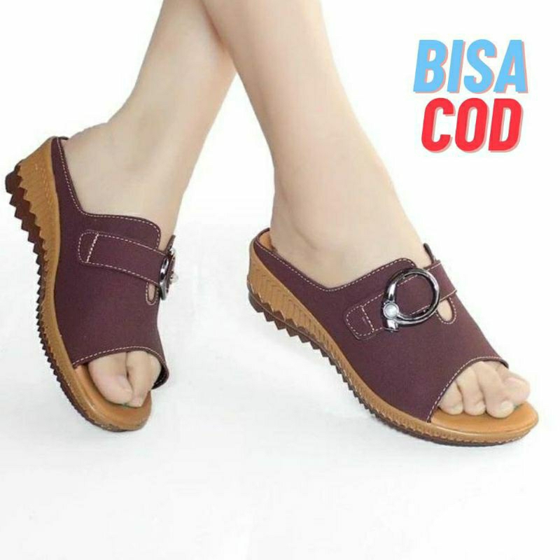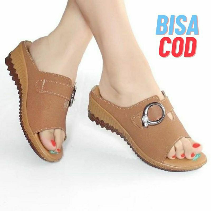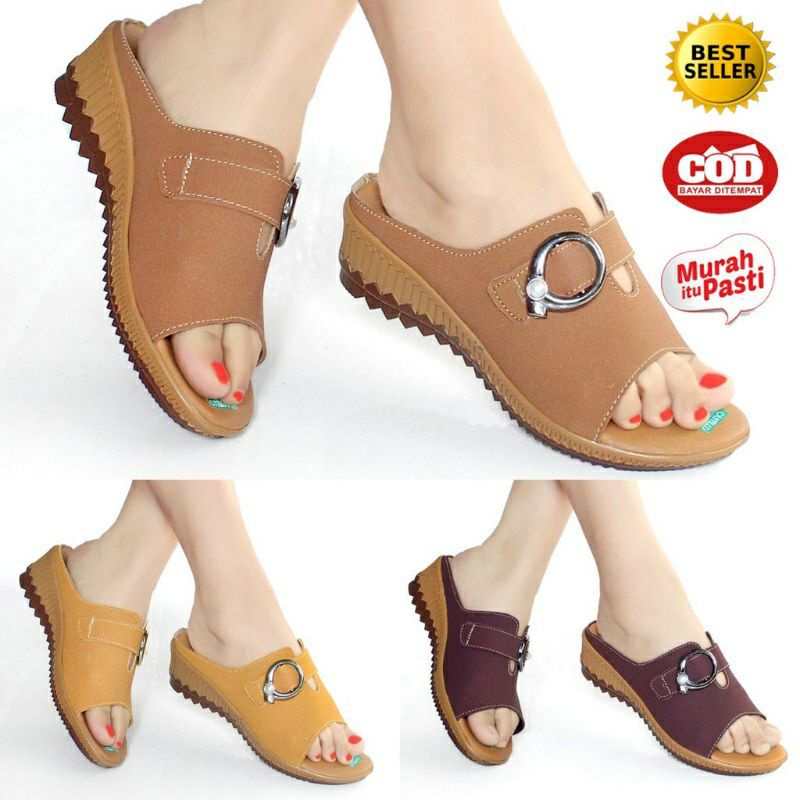 SANDAL SENDAL WEDGES WANITA CASUAL SELOP / SLOP IBU KONDANGAN KULIT SINTETIS MURAH TERBARU