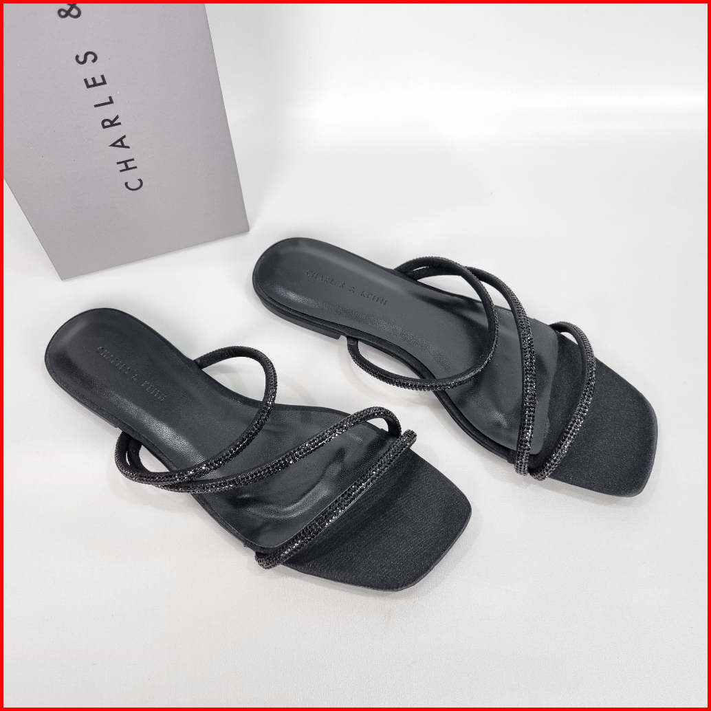 Sandal Flat Wanita Strappy Satin Crystal - Sc016