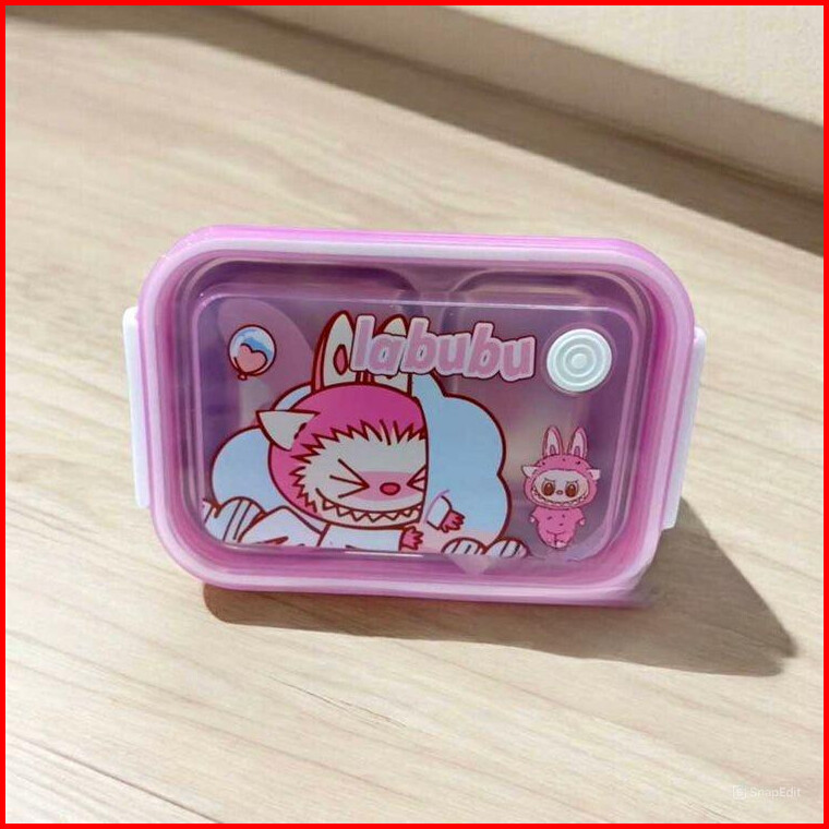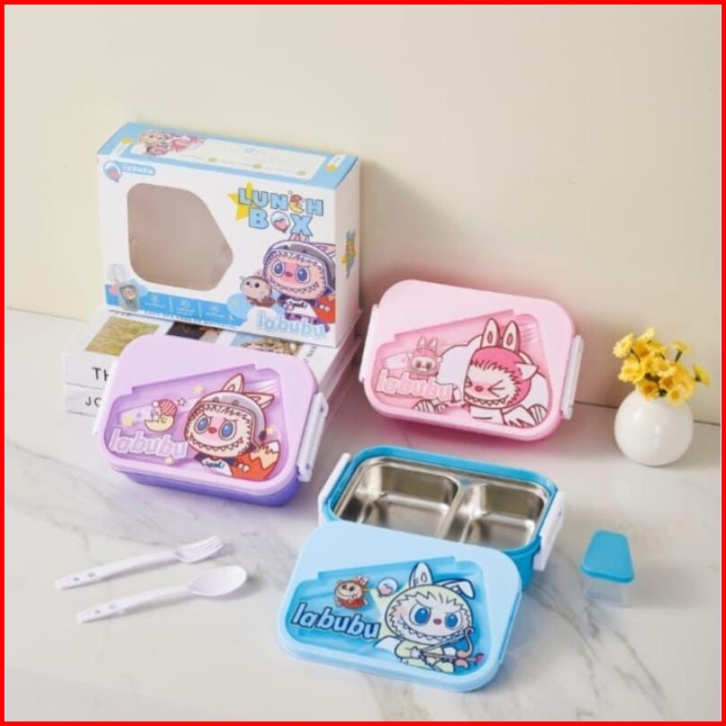 Lunch Box Stainless 2 Sekat Tempat Bekal Makan Labubu Kotak Makan Stainless Anti Tumpah Lunchbox Anak Tk Perempuan 500 M