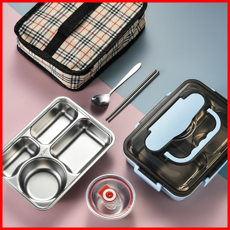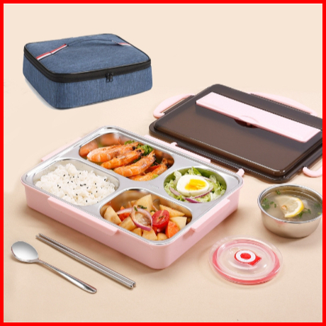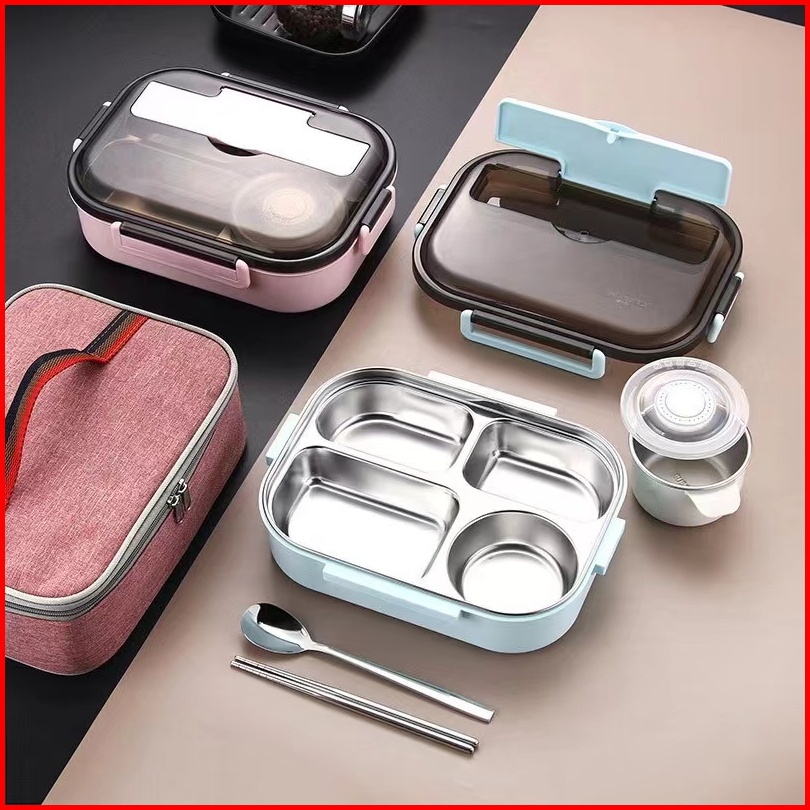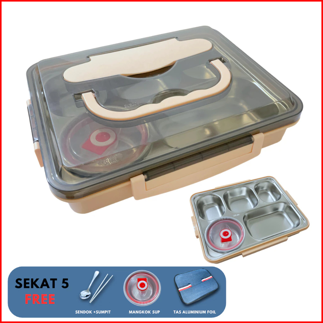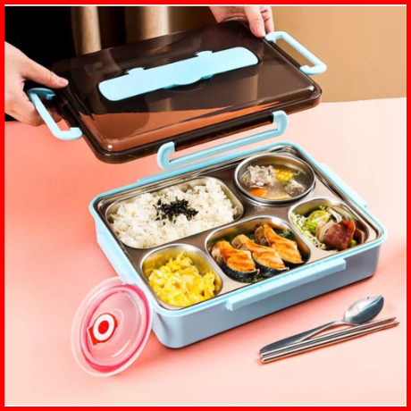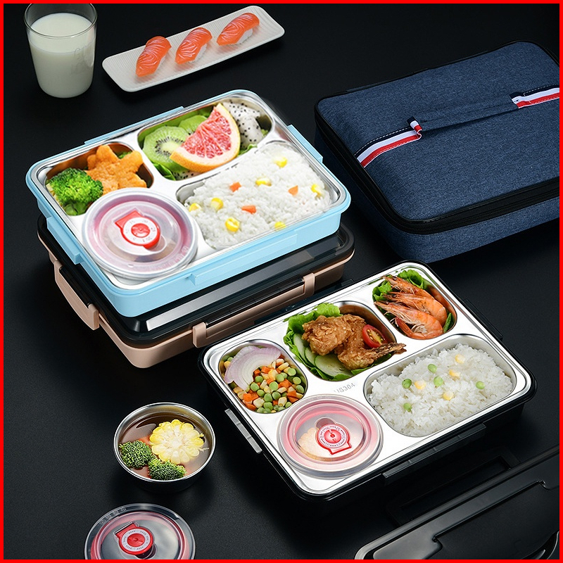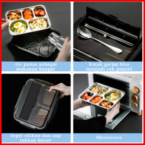 Lunch Box Kotak Makan 4 Sekat 5 Sekat Sus 304 Stainless Steel Lunch Box Stainless Tahan Panas Dan Anti Tumpah