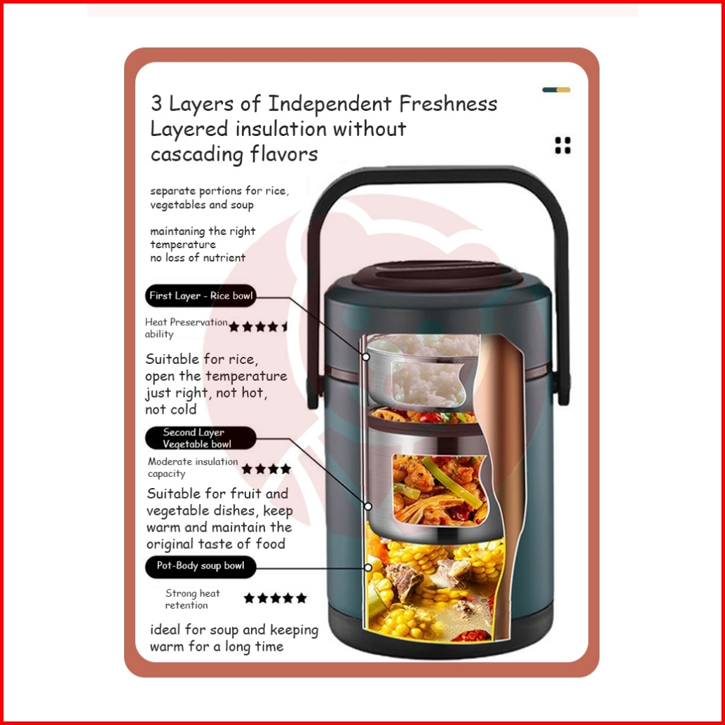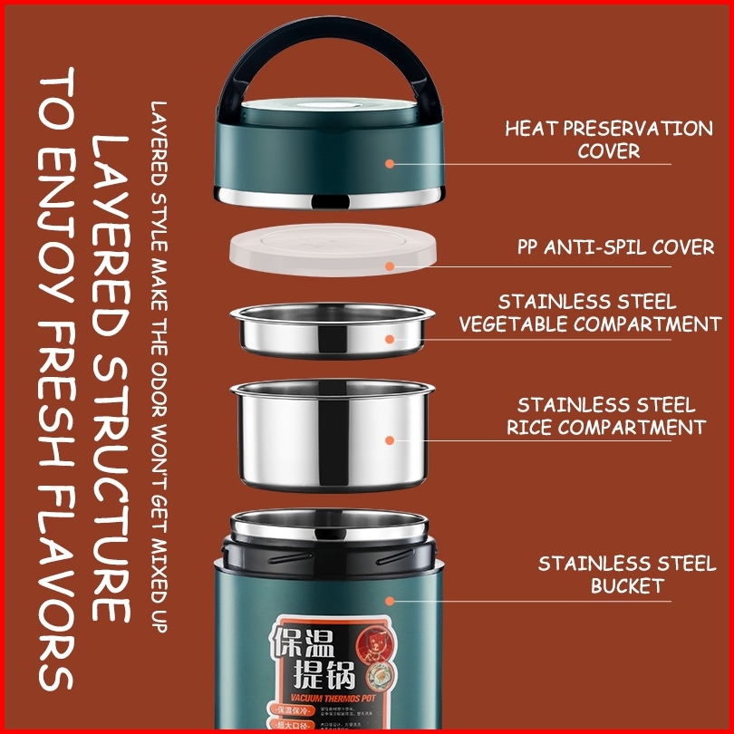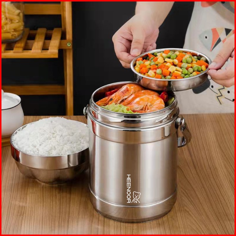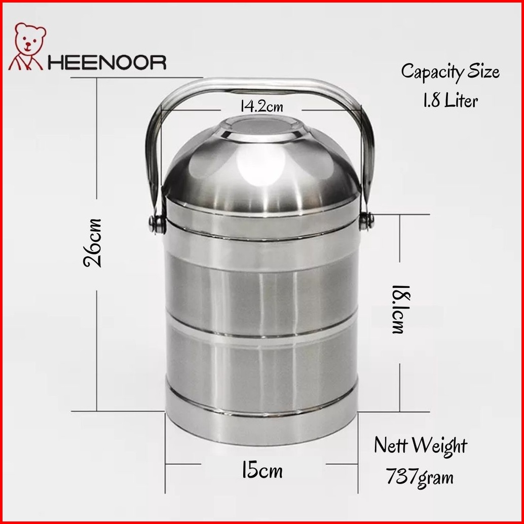 Heenoor Dual Layer 1.8l 2l 2.3liter Stainless Steel Food Carrier Rantang Susun Stainless Kotak Makan Bekal Hf-5021 5023