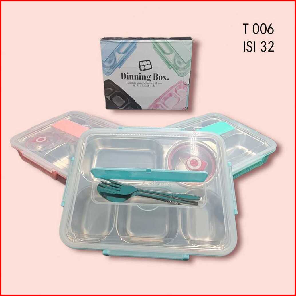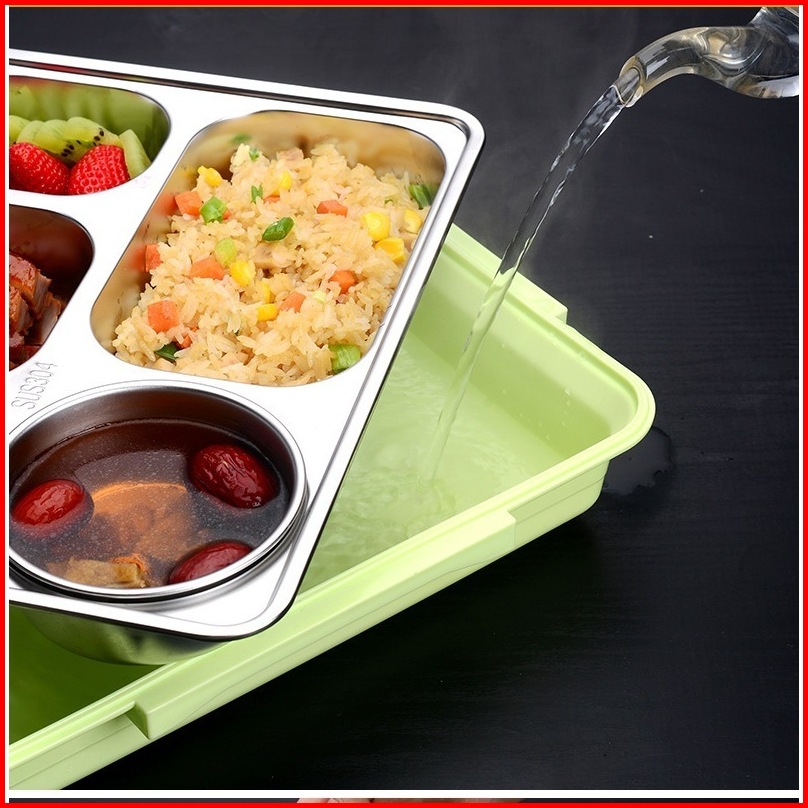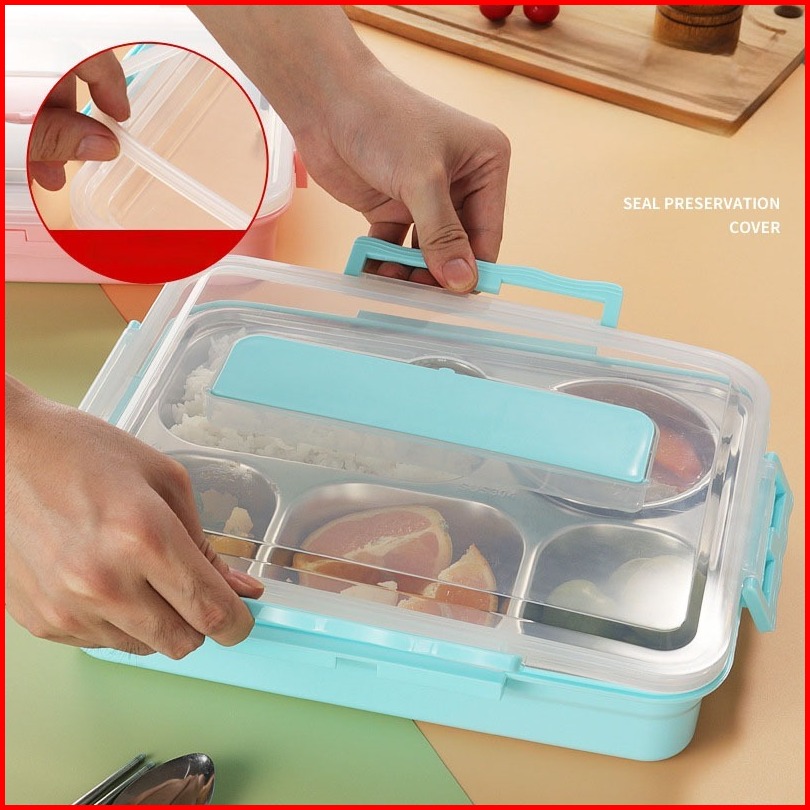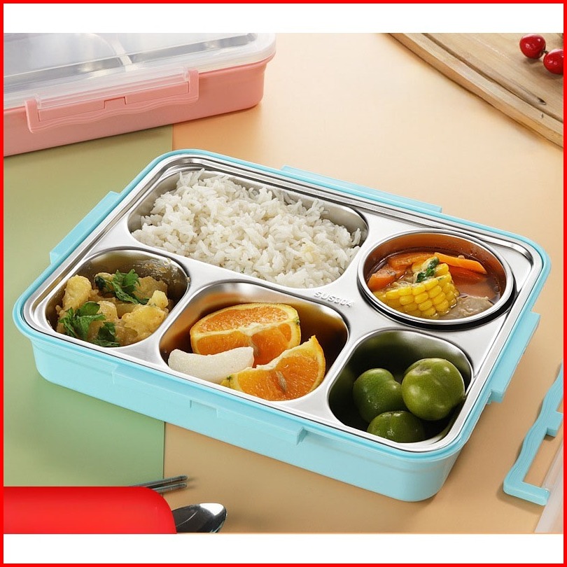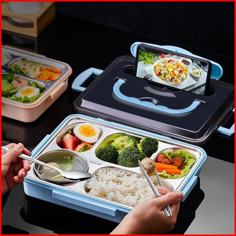 Lunch Box Tempat Makan Sekat Plus Tas Bekal Stainless 304 Food Grade Free Sendok Sumpit Anti Tumpah