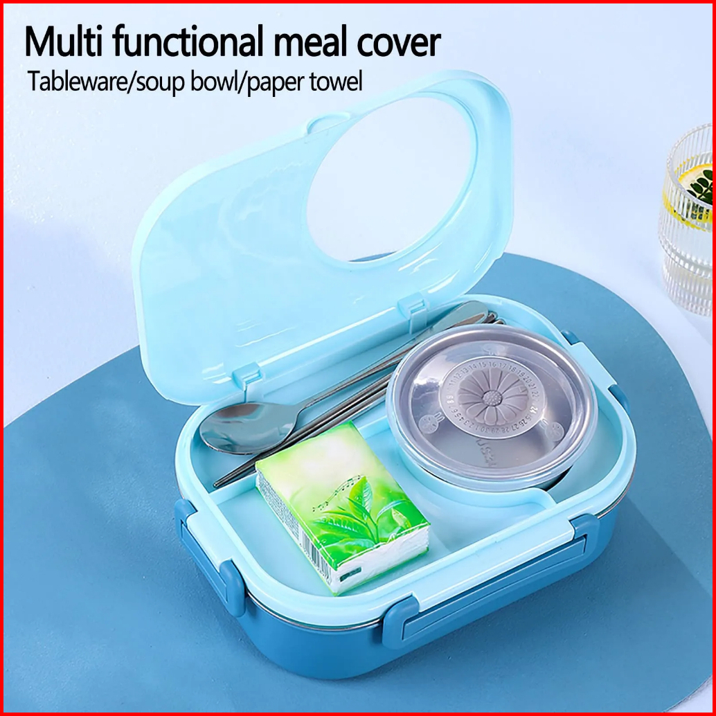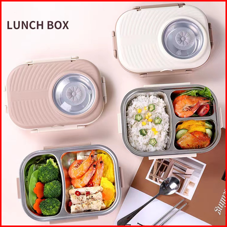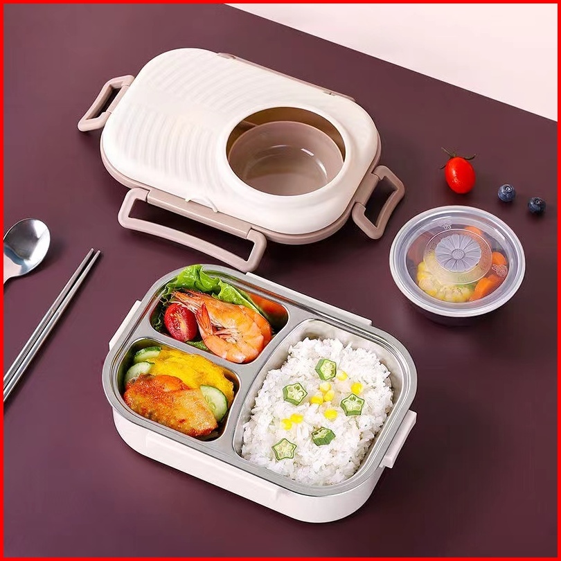 1000ml Kotak Makan Stainless 3 Sekat Tempat Sup 200ml Lunch Box Stainless Tahan Panas Dan Anti Tumpah