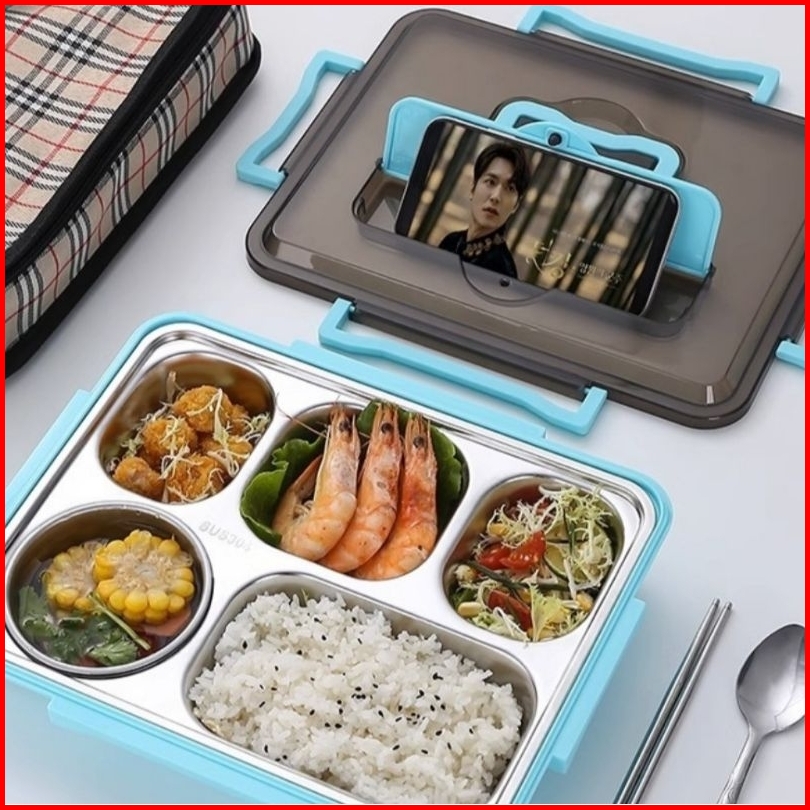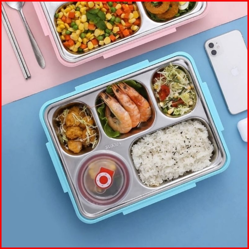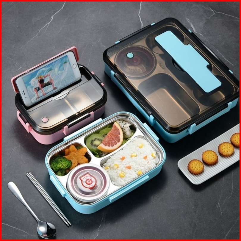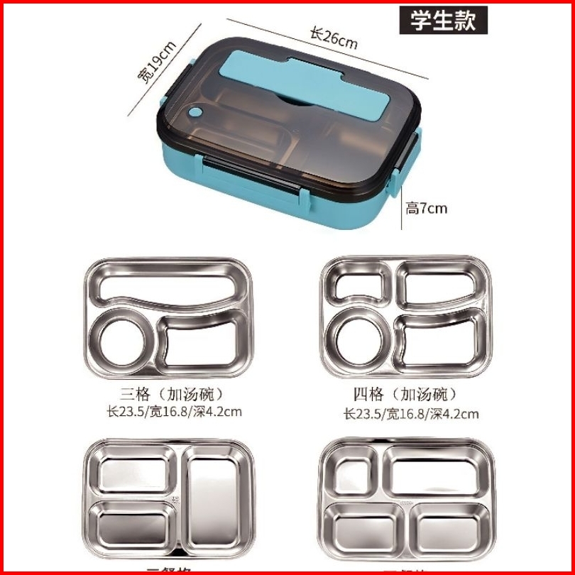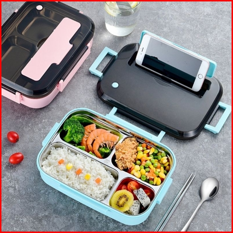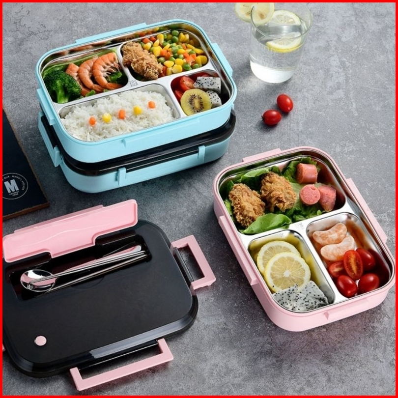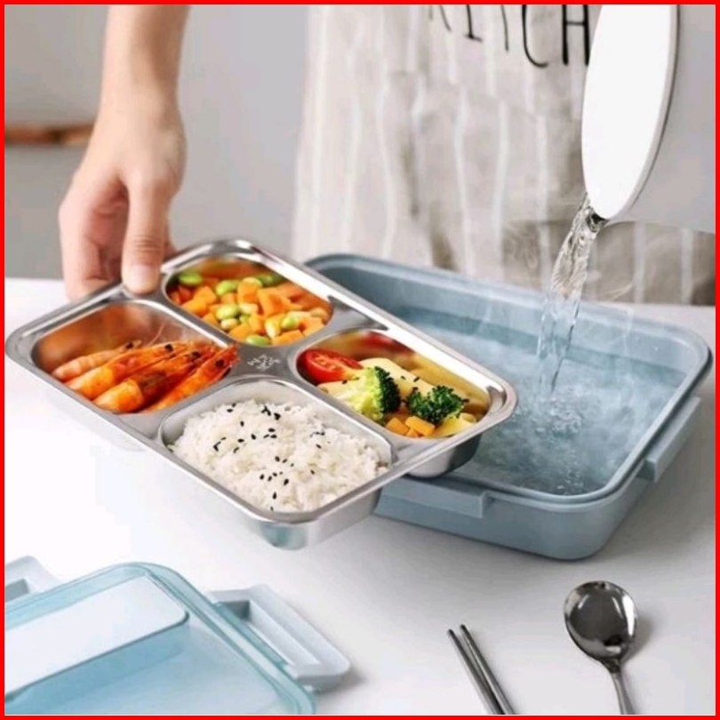 Tempat Makan Lunch Box Stainless Dan Anti Tumpah Free Sendok Sumpit