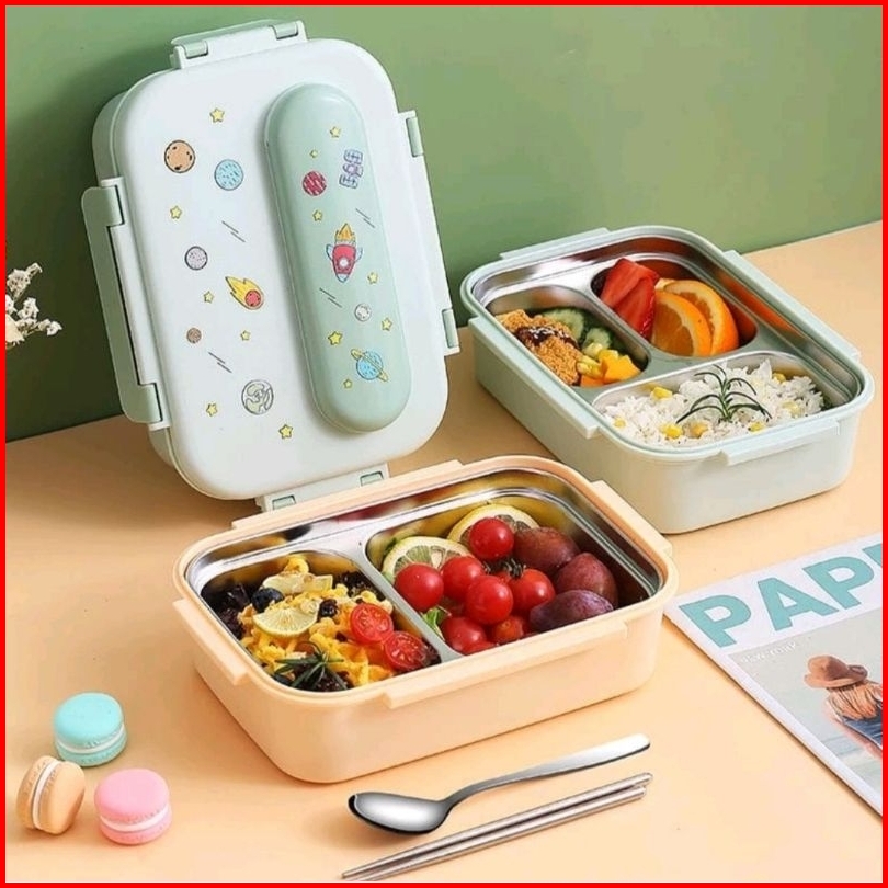 Kotak Makan Stainless Steel Sekat Astronout Edition Kids Premium Lunch Box