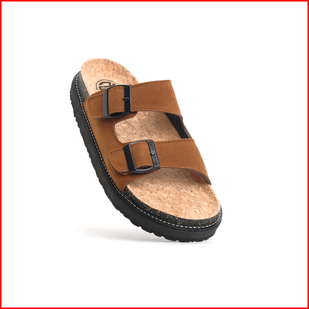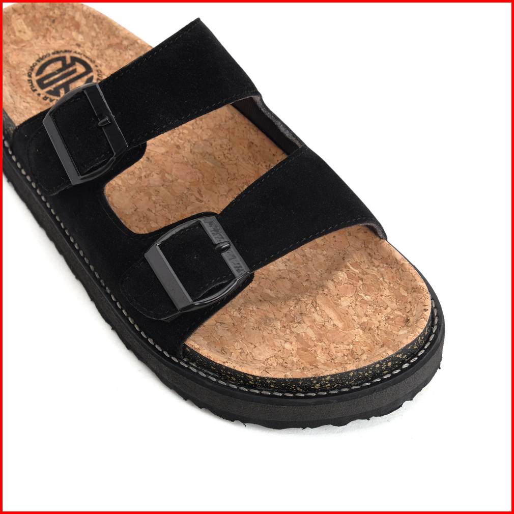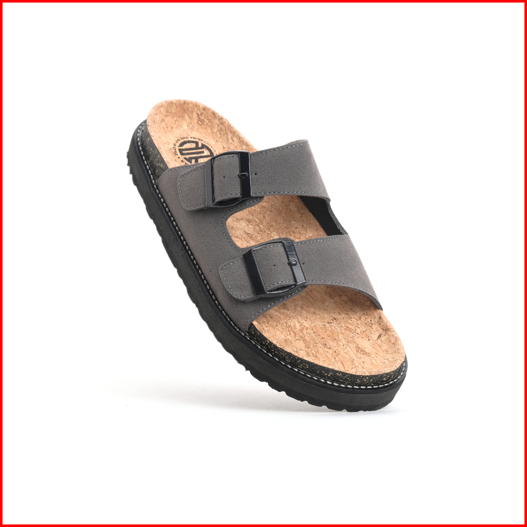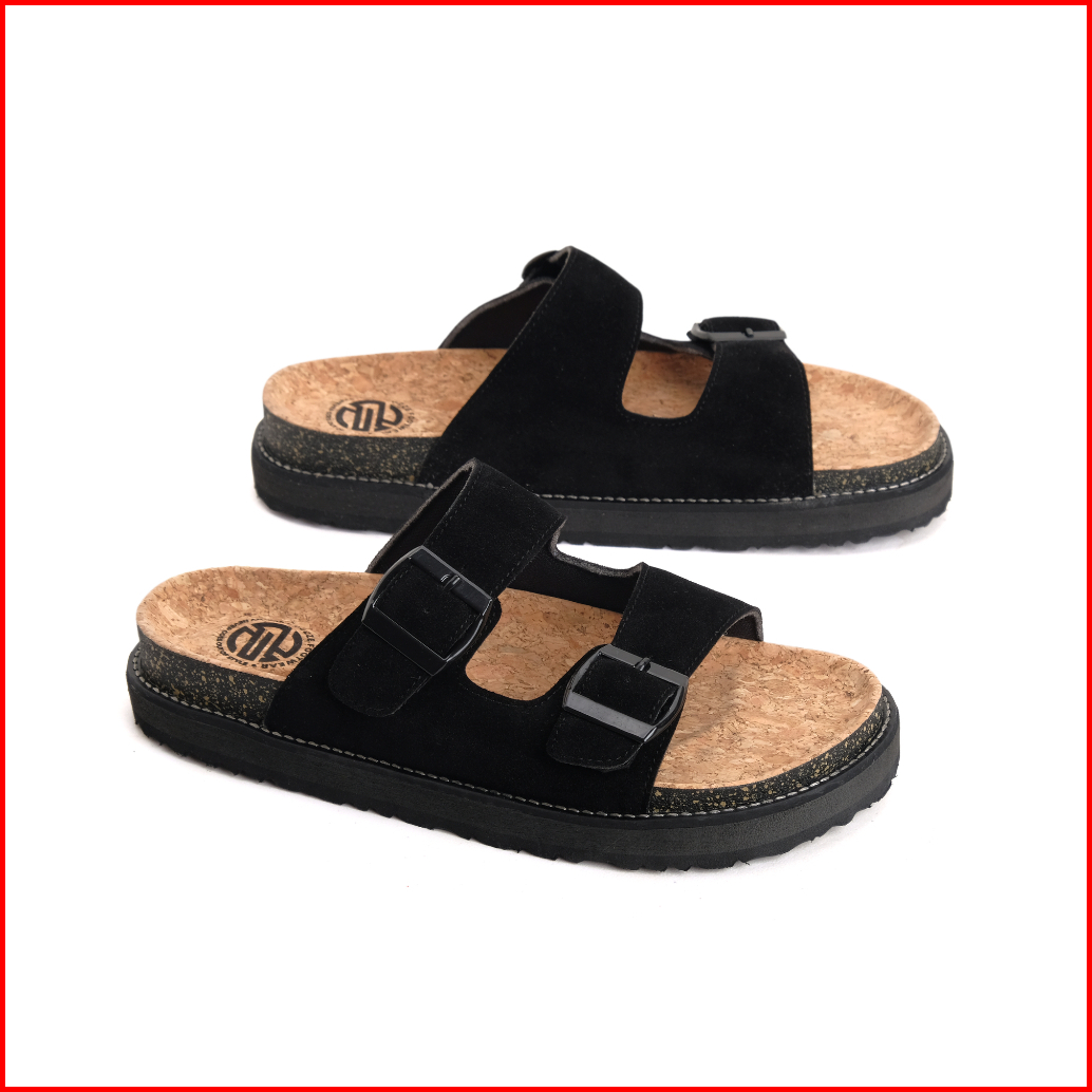 Moade Sandal Slide Footbed Casual Vintage Two Strap Pria Hitam Abu
