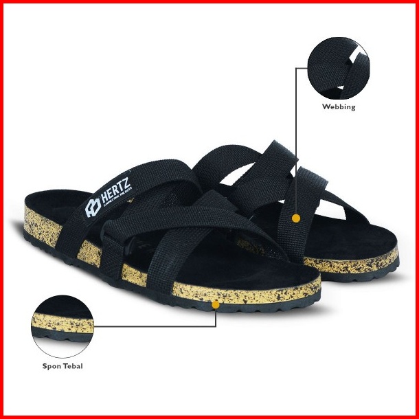 Hertz - Sandal Pria Terbaru H 2878 Brand Hertz Sandal Puyuh Warna Hitam.