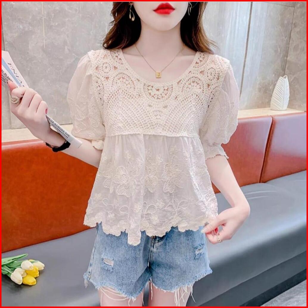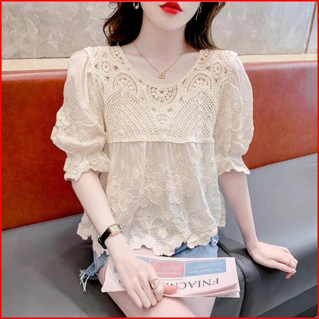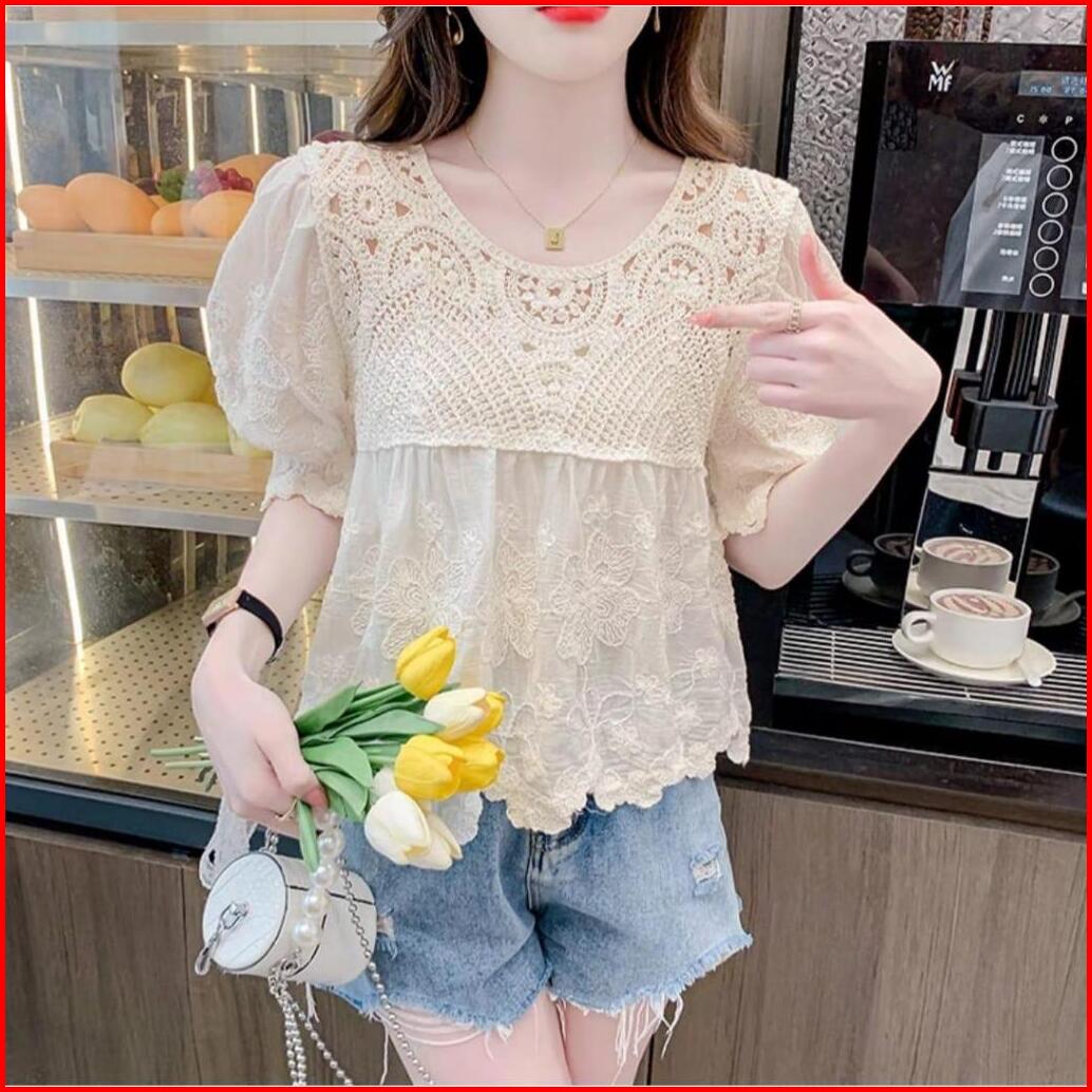Tm 42000 Blouse Dorothy Crochet Top Bunga-bunga Import