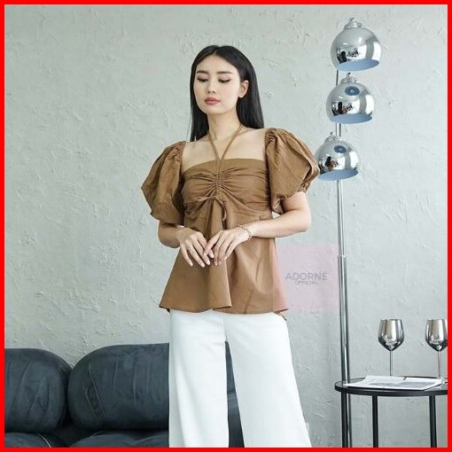 Aden Blouse Halter Blouse Atasan Lengan Pluffi Tali Leher Atasan Korean Style Terbaru