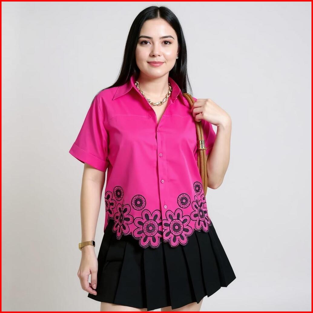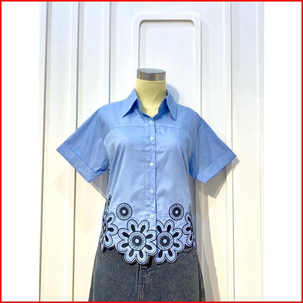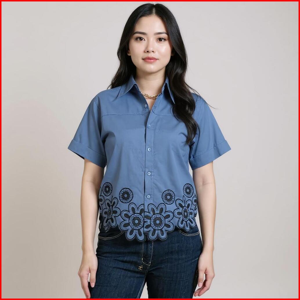 Rina Flower Basic Cotton Blouse Atasan Kemeja Wanita Korean Style Basic Lengan Pendek