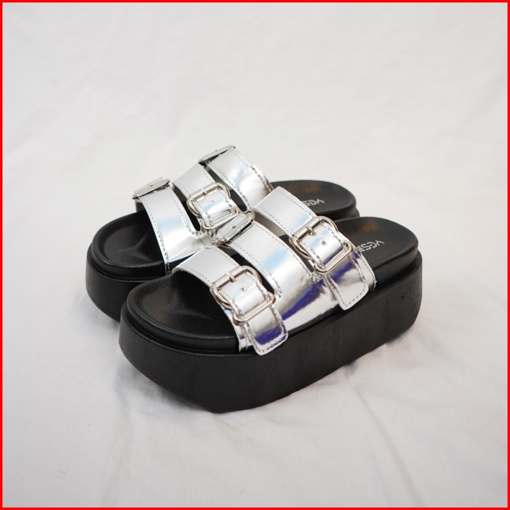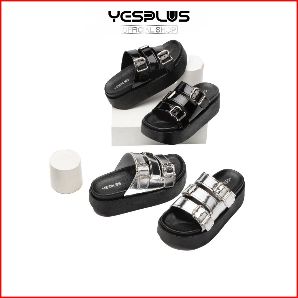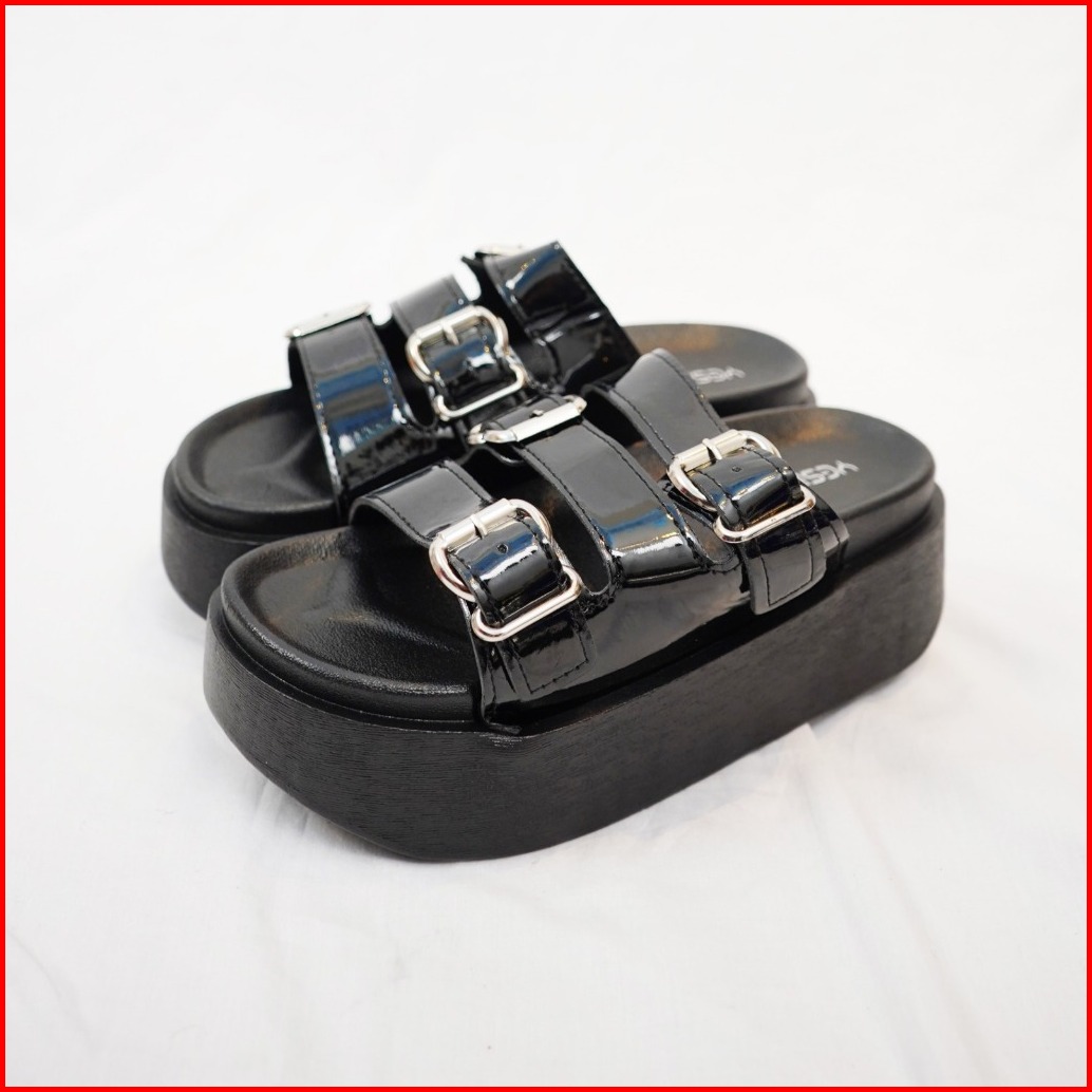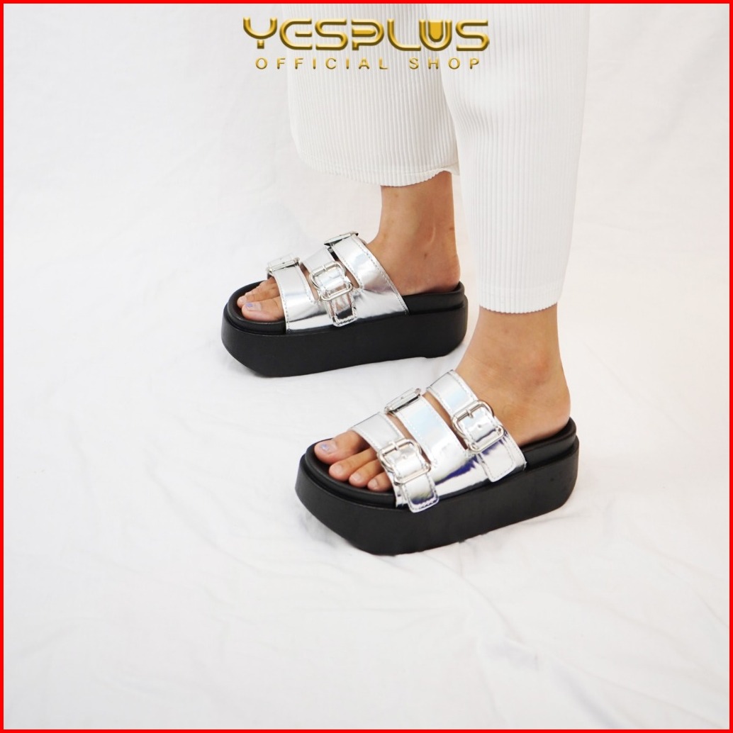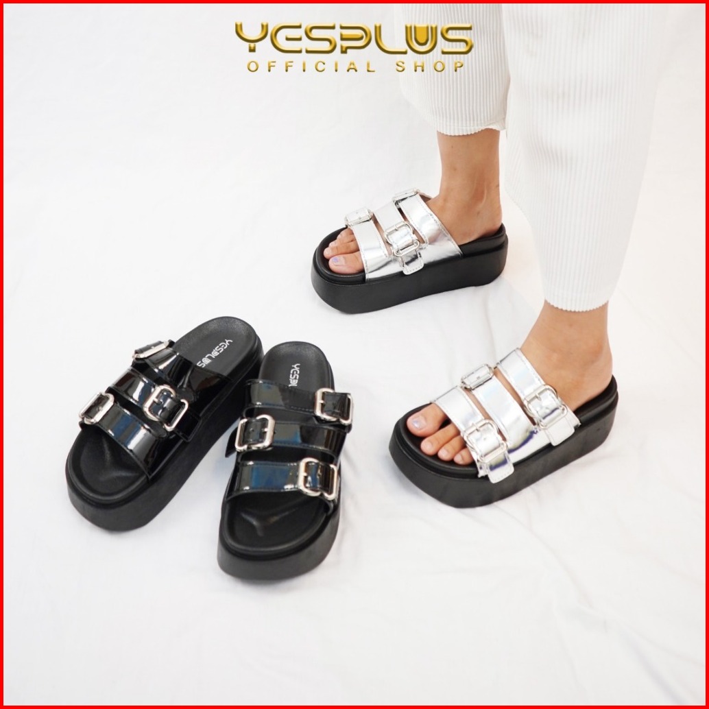 Yesplus Sandal Original 88-5 Sandal Slip On Wedges Wanita 7 Cm Motif Strap 3 Gesper Bahan Rubber Pcu Anti Slip Size 36-4