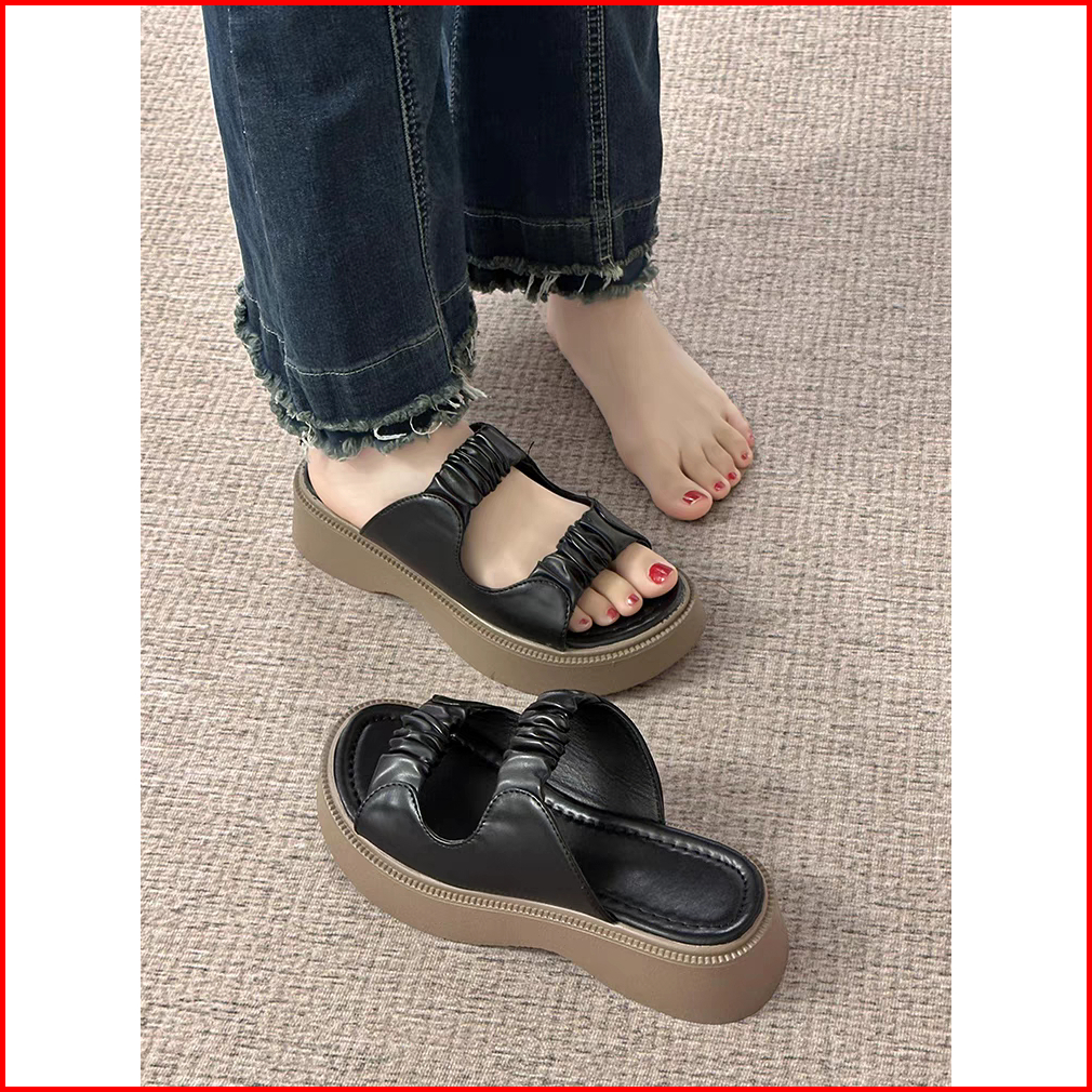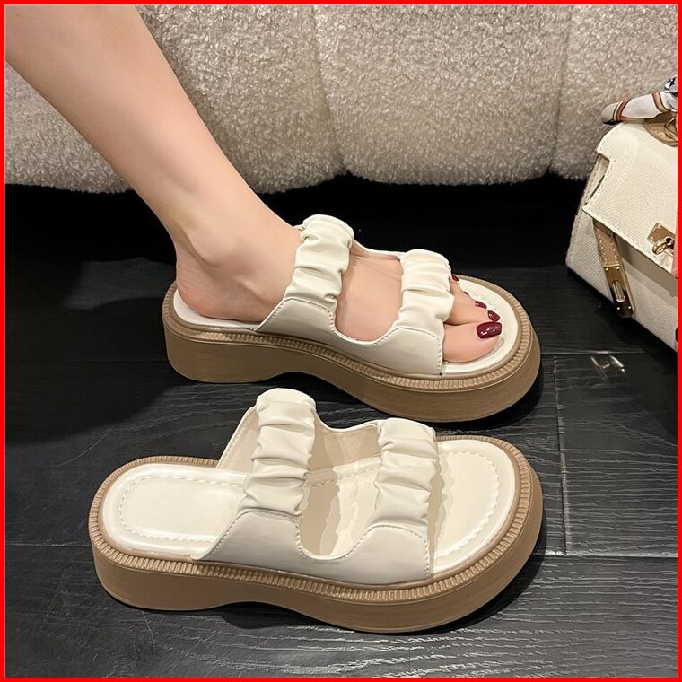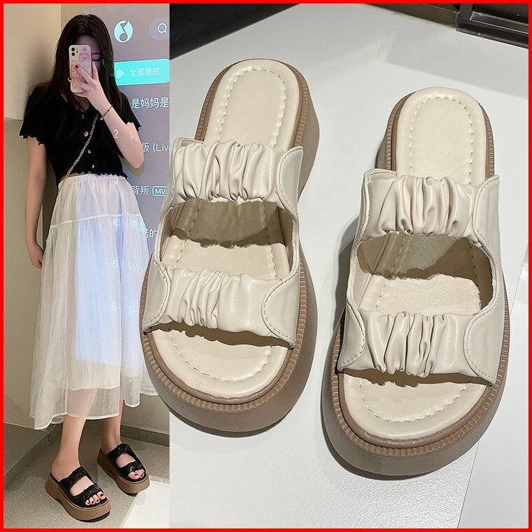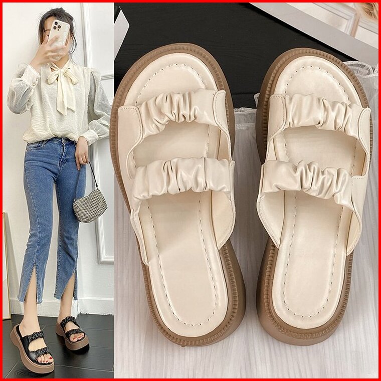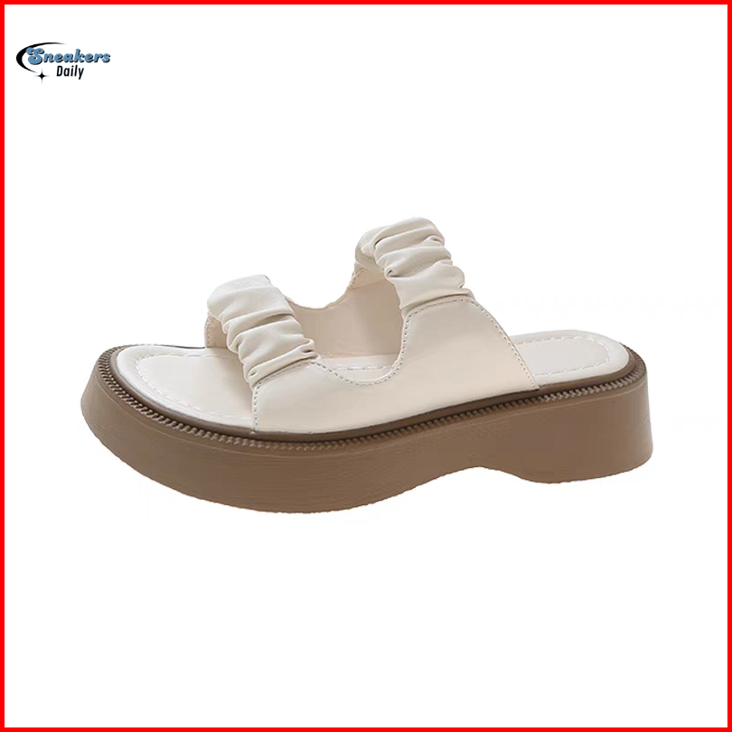 Sandal Wedgse Wanita Ruched Strap Model Casual Korea Premium
