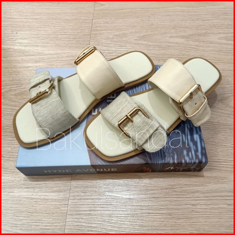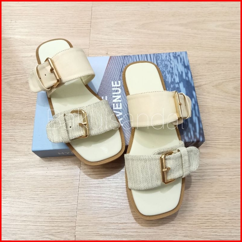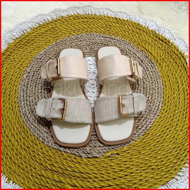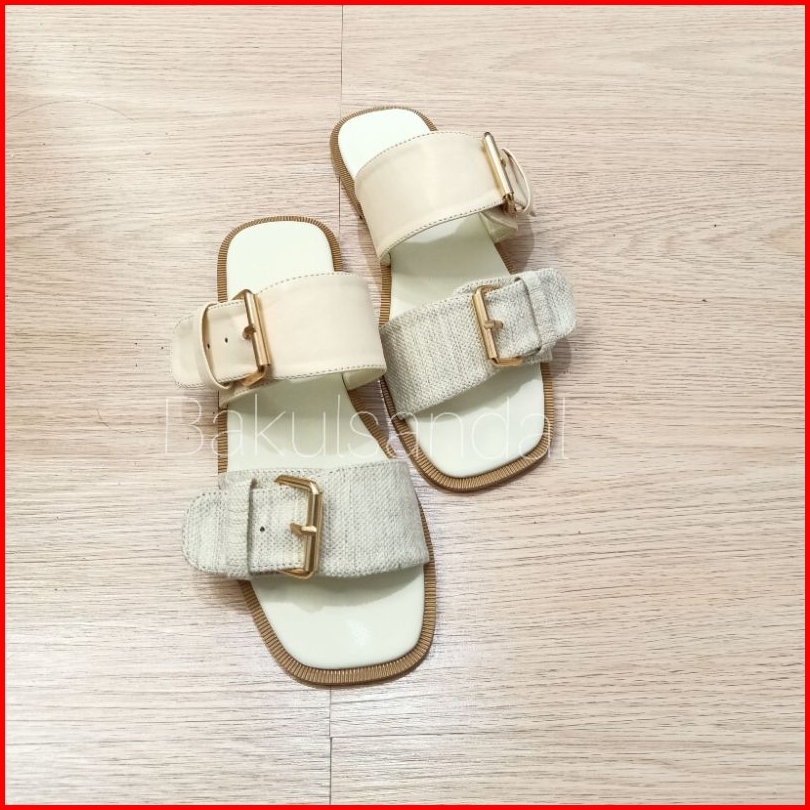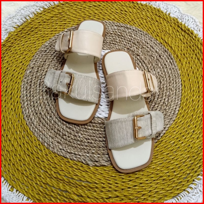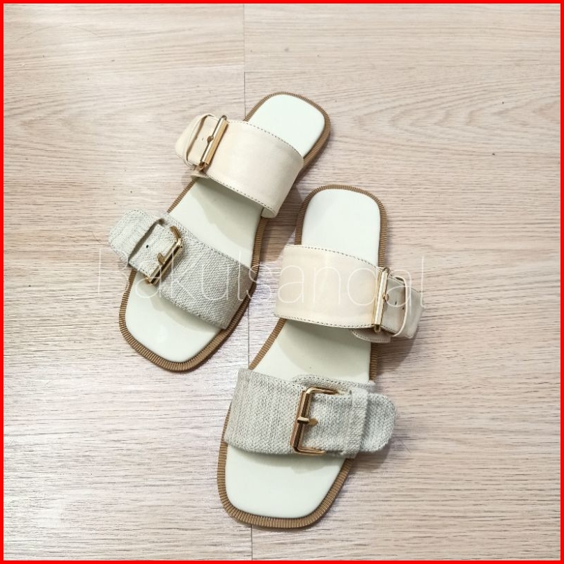 Sandal Flat Saga Canvas 2 Strap Kulit Sintetis