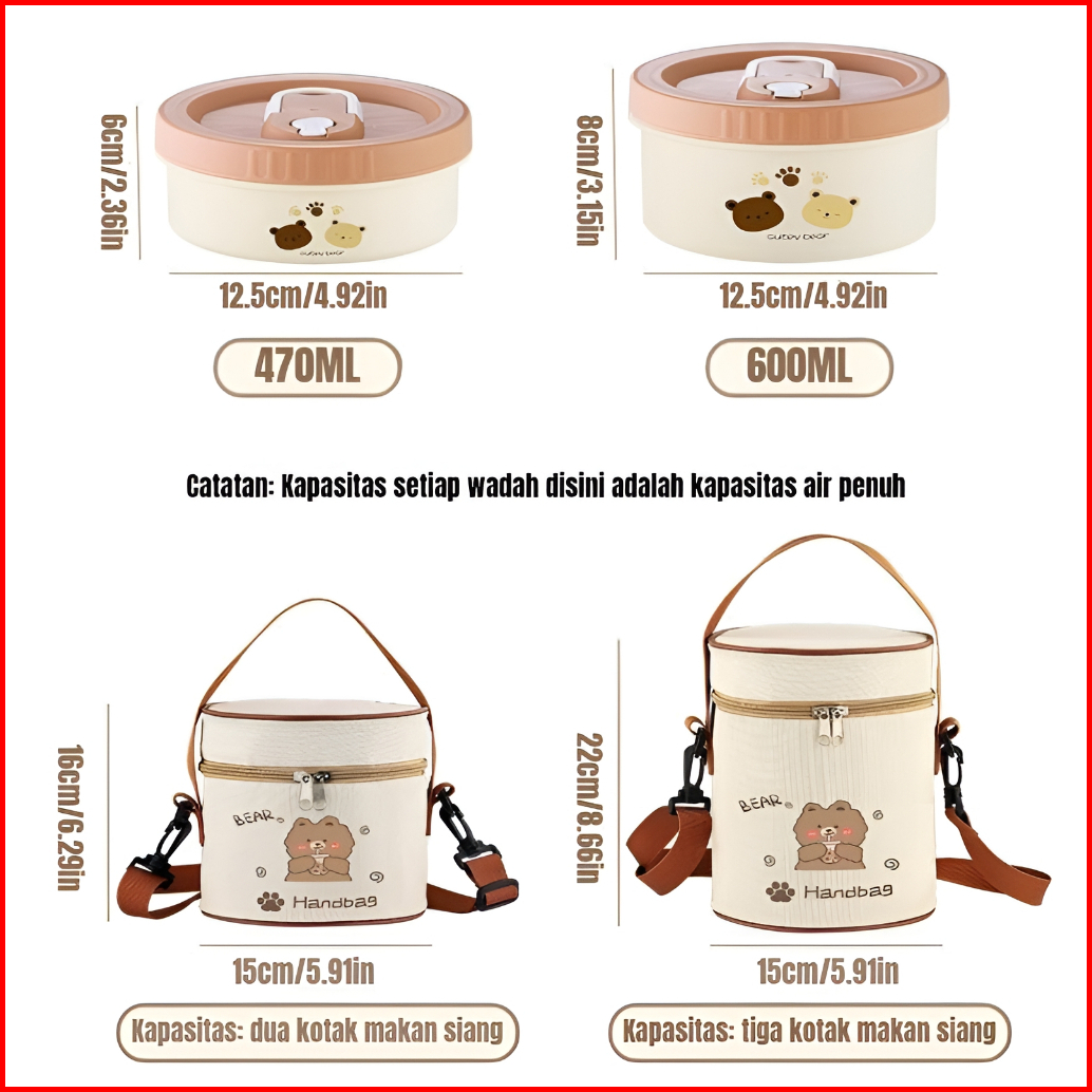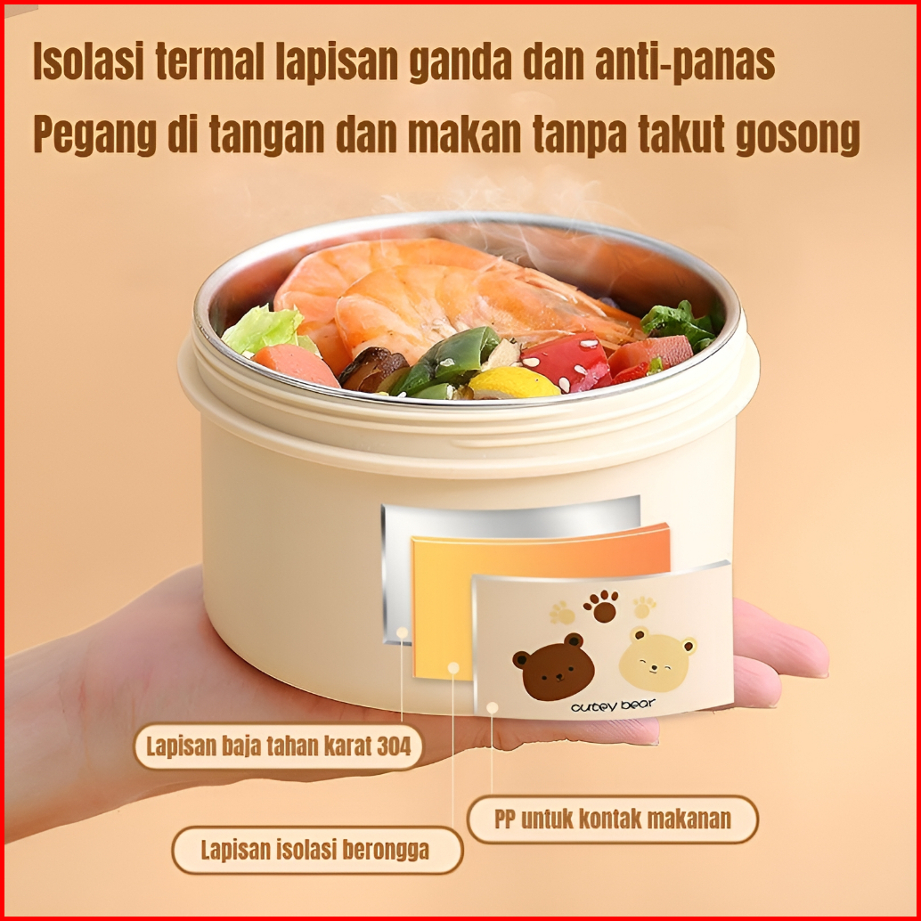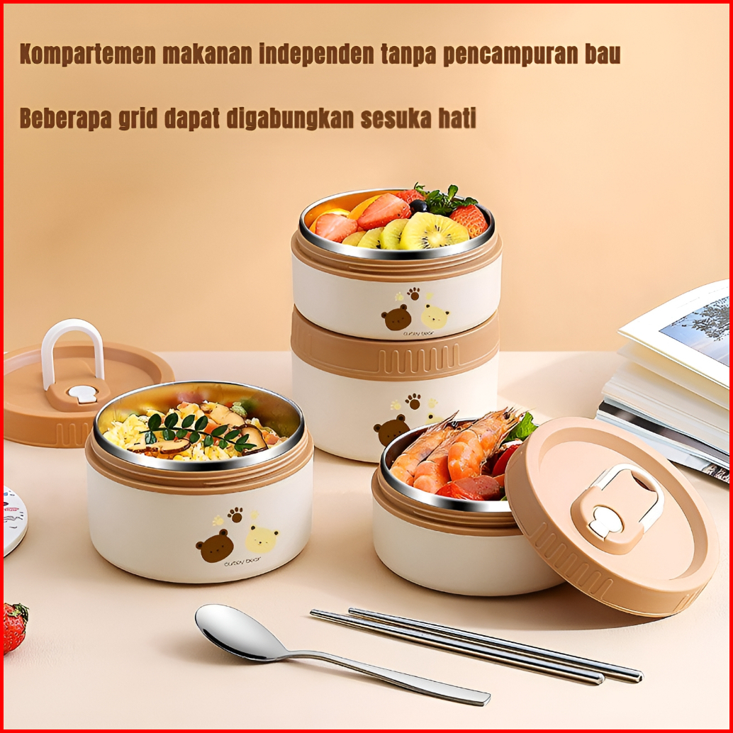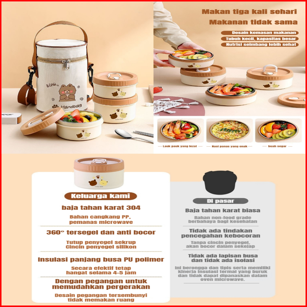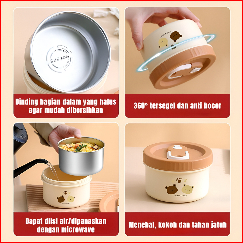 Kotak Makan Lunch Box Siang Bento Portabel Tahan Bocor Kotak Bekal Tempat Makan Stainless Container Sealed Cangkir Sup M