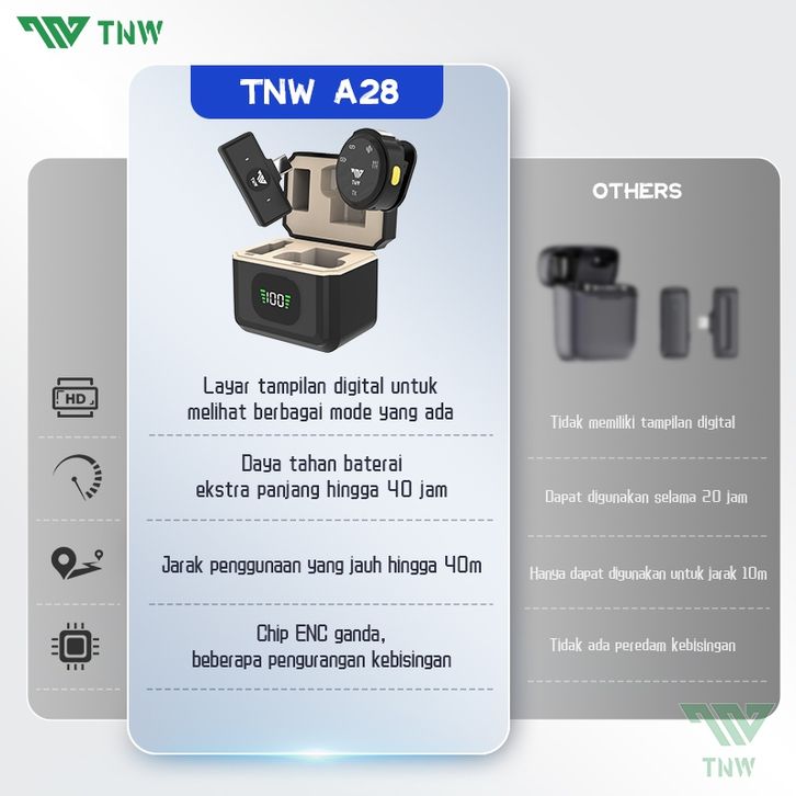 PROMO TNW A28 Wireless Microphone Magnetic Clip On Mic Lavalier Microphone HP Plug & Play Nirkabel Mikrofon with Chargin