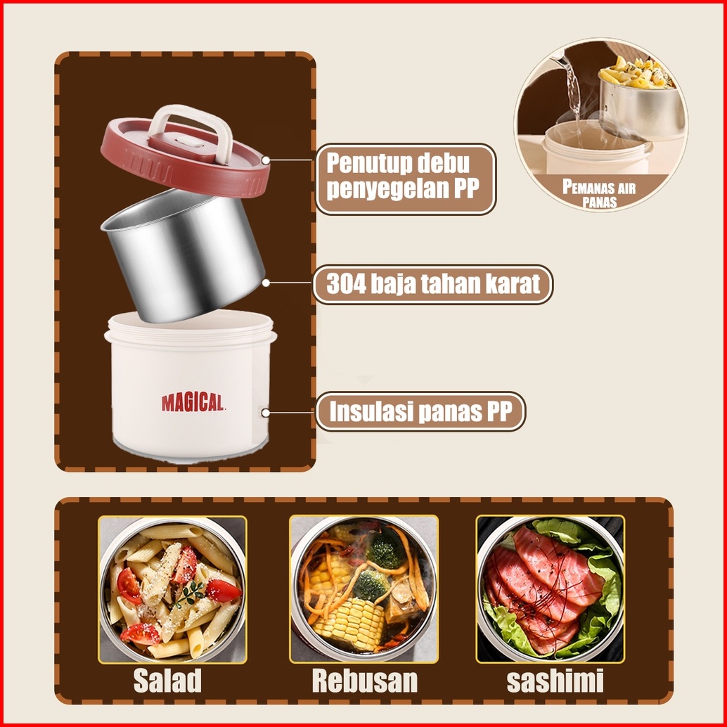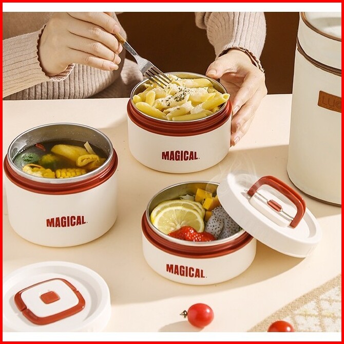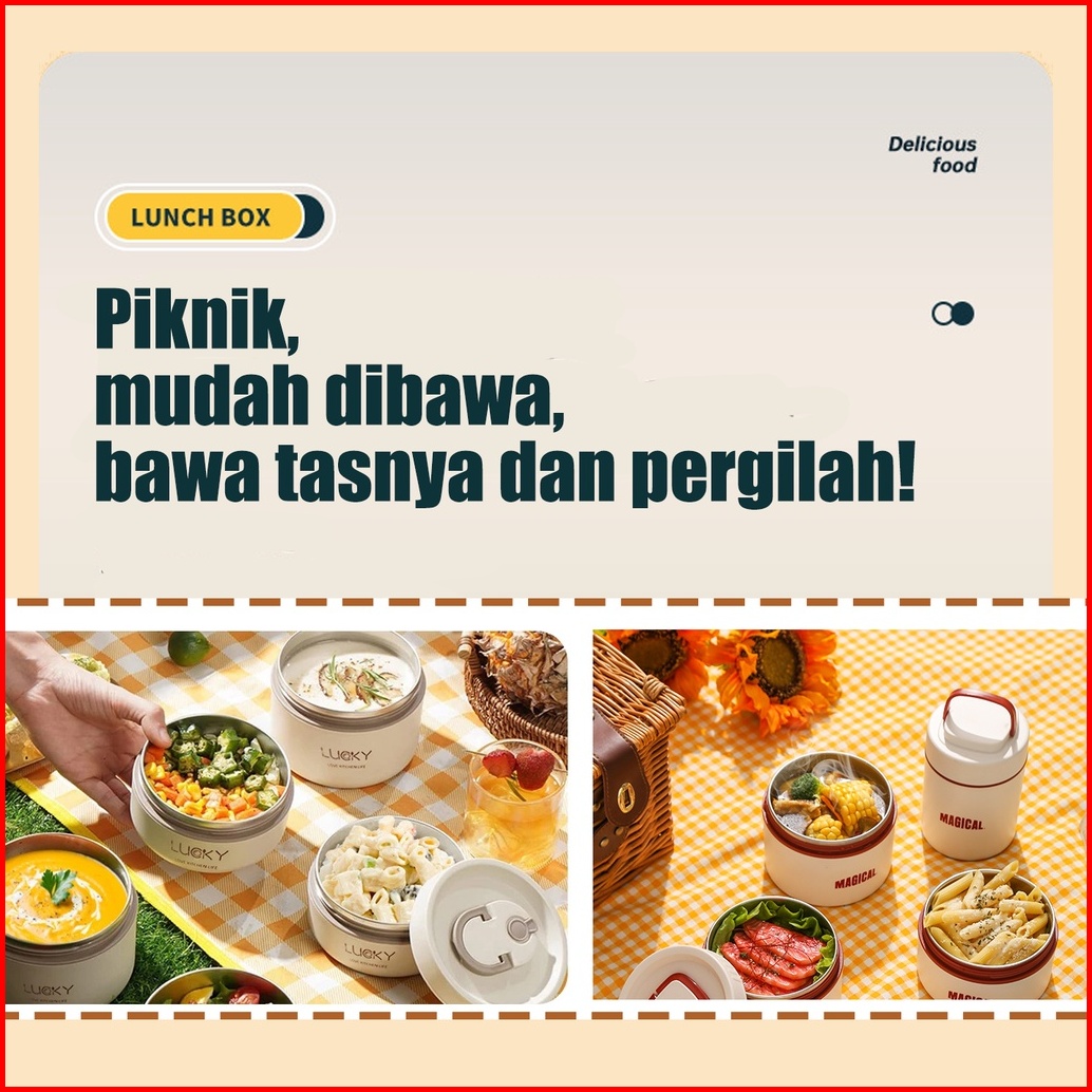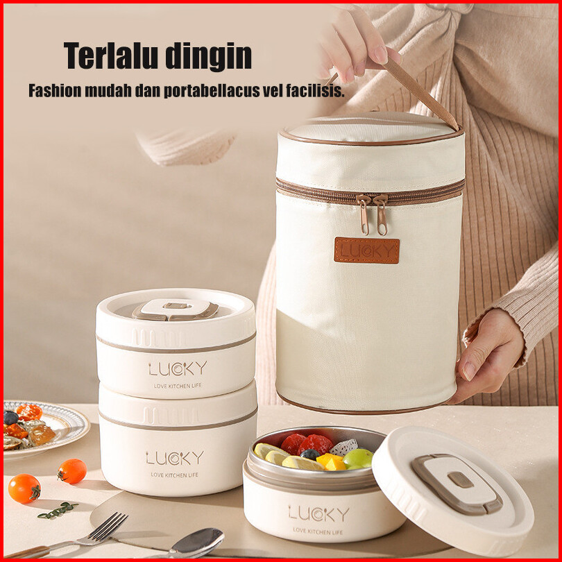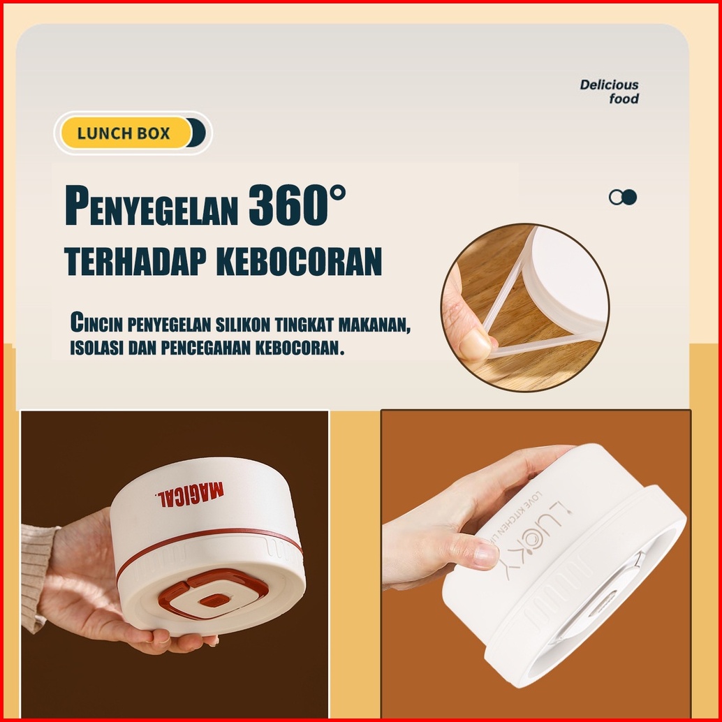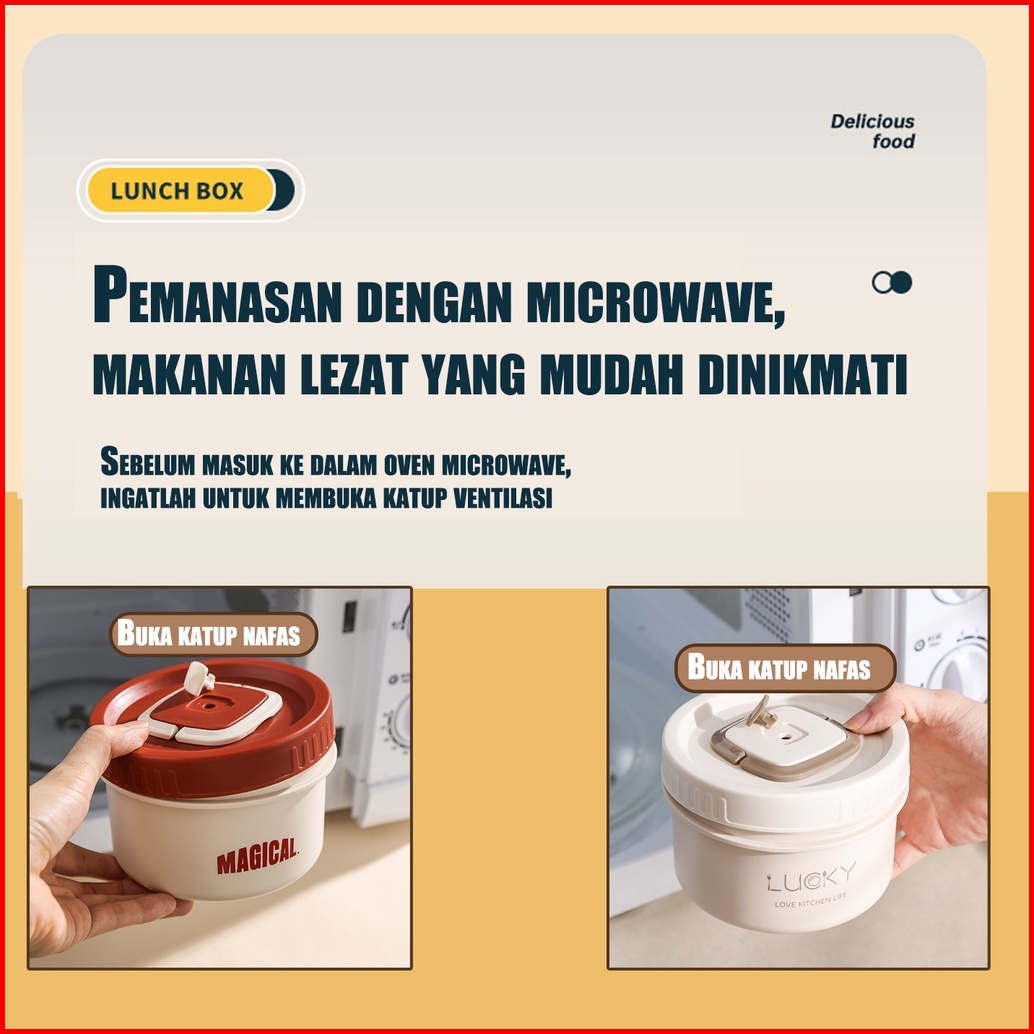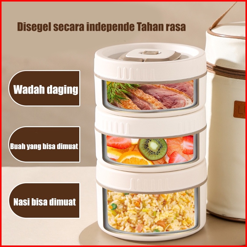 Round Stainless Lunch Box Kotak Makan Siang Bento Portable Bergaya Jepang
