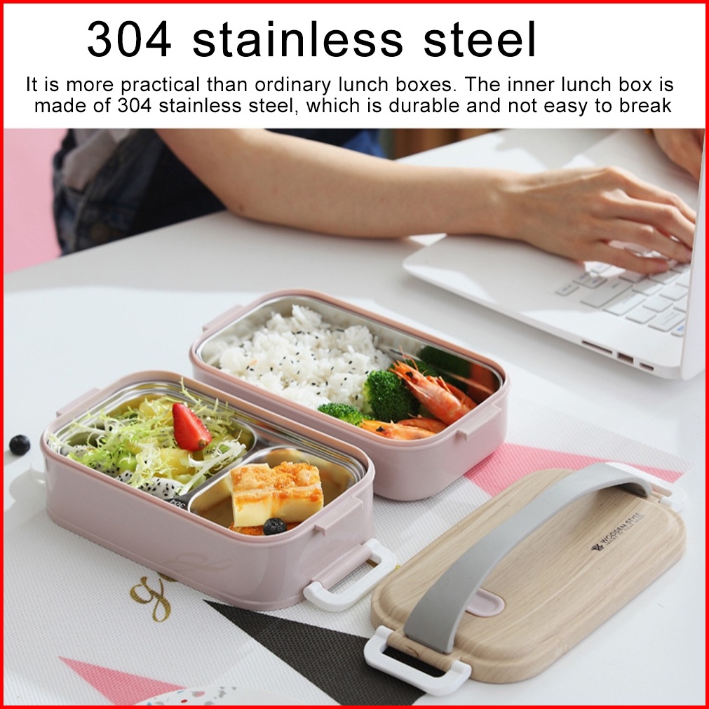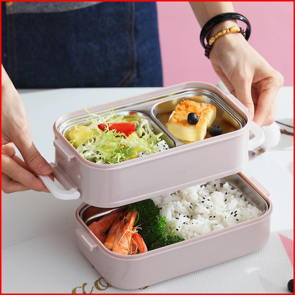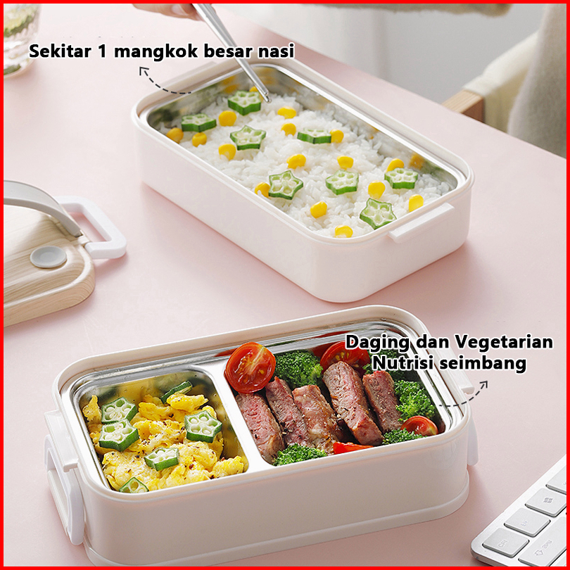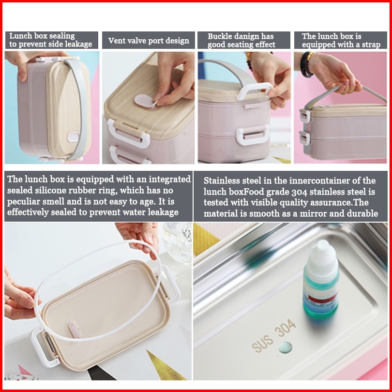 Kotak Makan Siang 2 Tingkat Anti Bocor Stainless Steel Sendok Garpu Kotak Makan Siang 304 Stainless Steel Liner