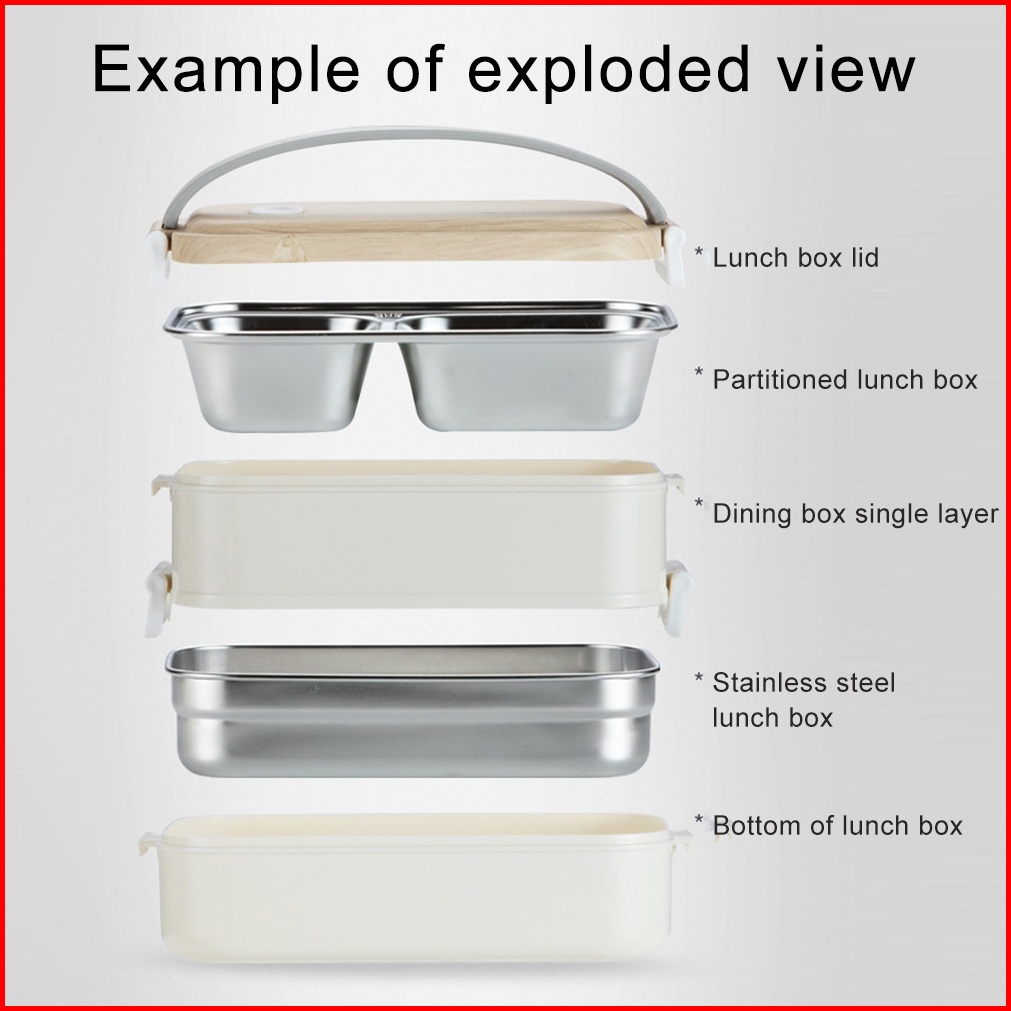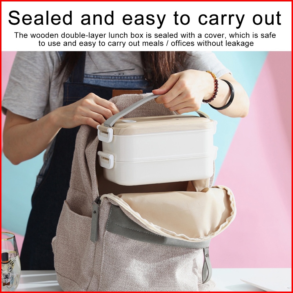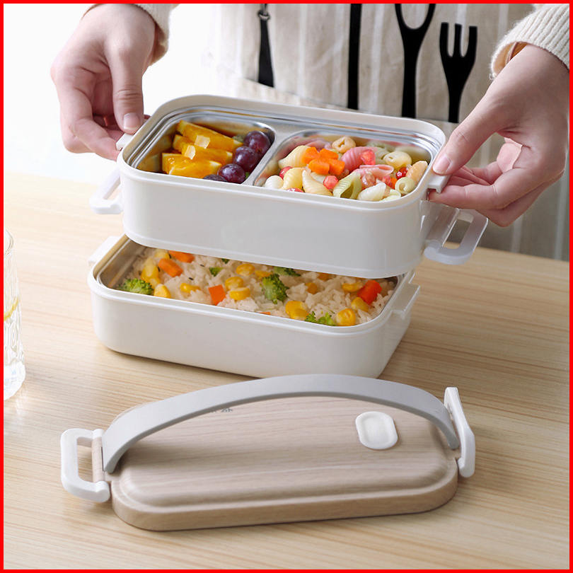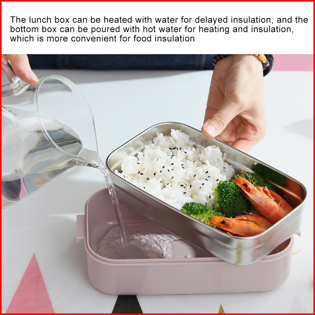 Kotak Makan Siang 2 Tingkat Anti Bocor Stainless Steel Sendok Garpu Kotak Makan Siang 304 Stainless Steel Liner