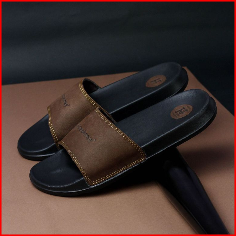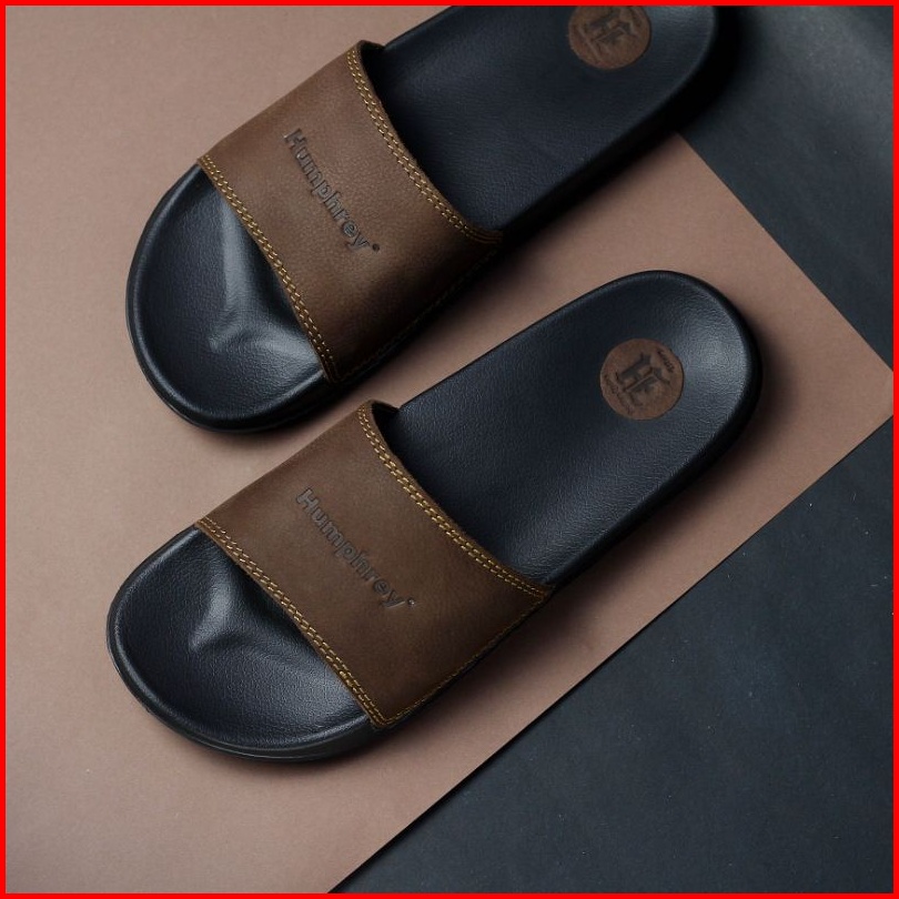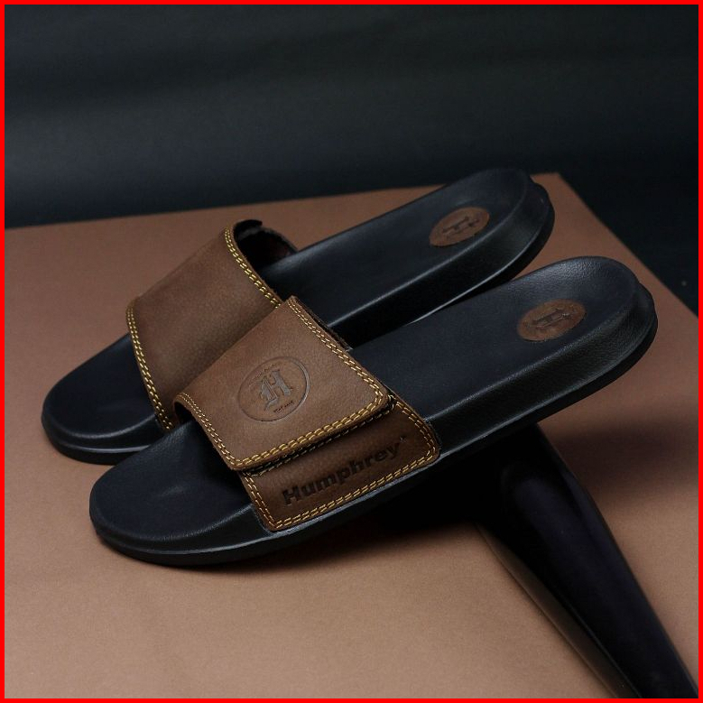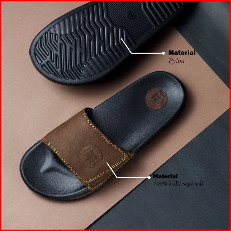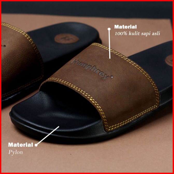 Sandal Kulit Pria Humphrey Kulit Asli Garut Sandal Slide Laki Laki Pria Sandal Slip On