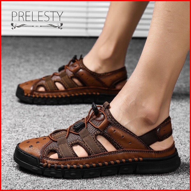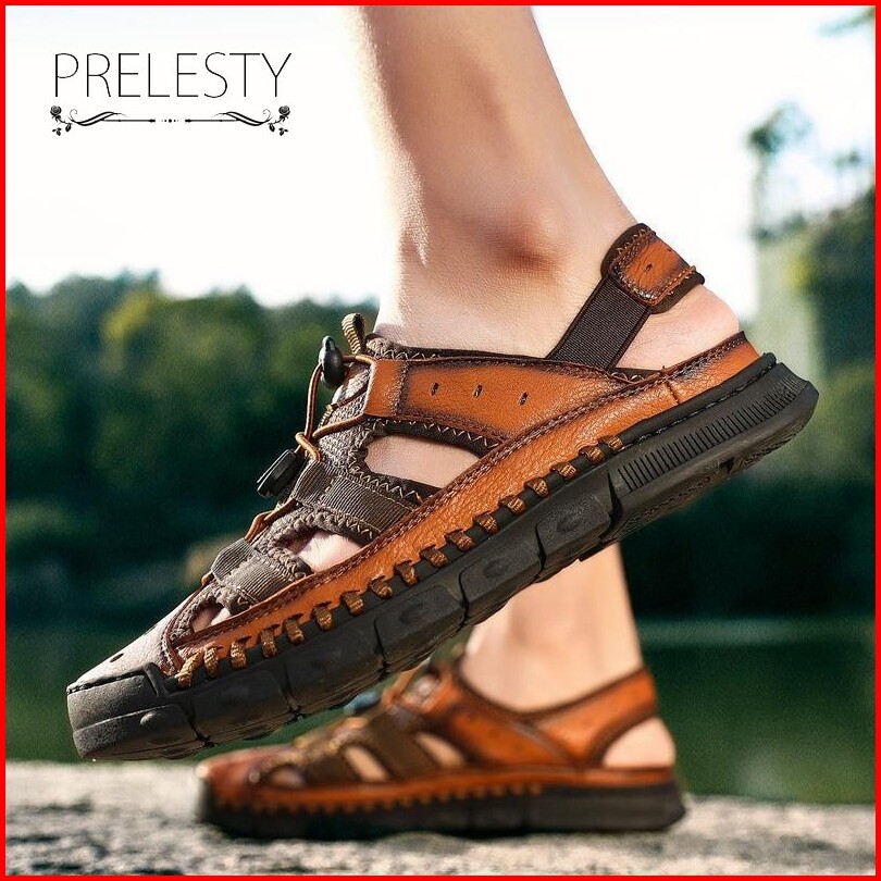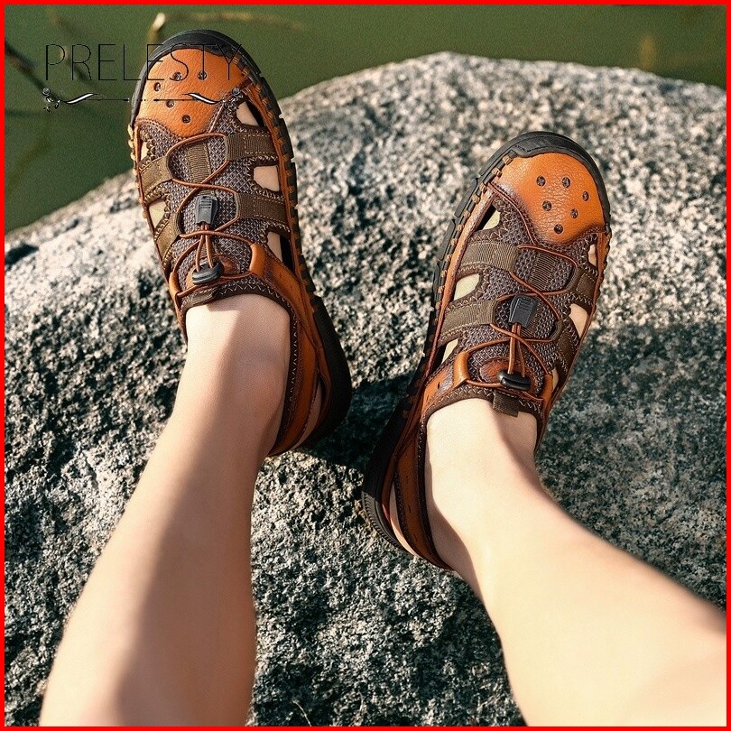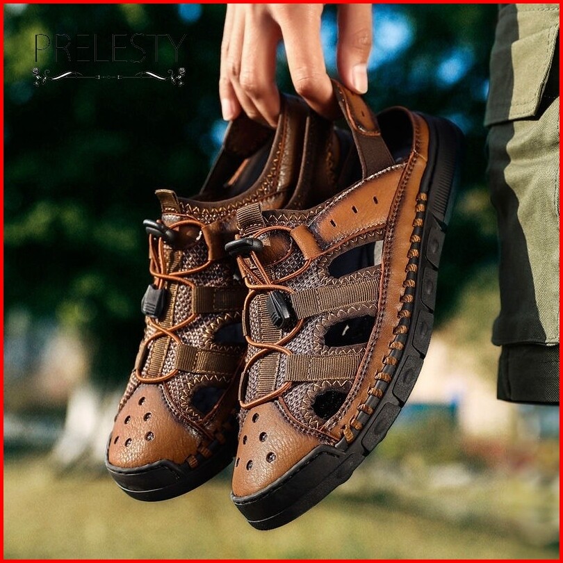 Handmade Olahraga Sandal Gunung Mtb Sendal Pria Gunung Hiking Mendaki Kulit Asli Outdoor Trekking Waterproof 046