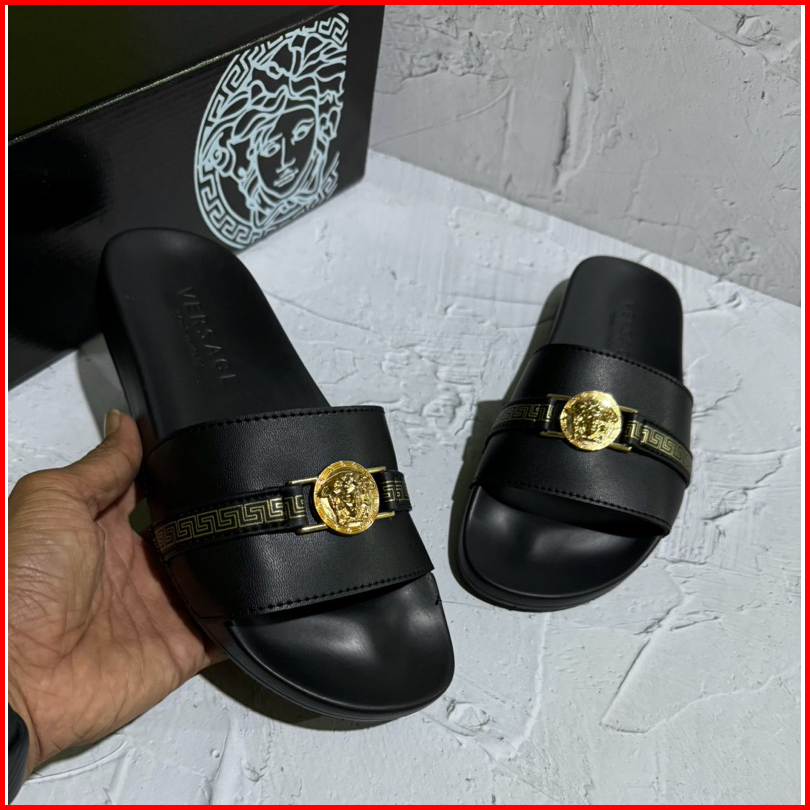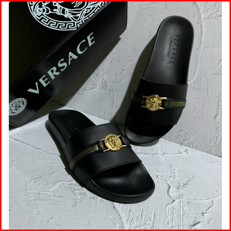 Sandal Slip On Premium Sace Logo Pita Hitam Fre Boxs