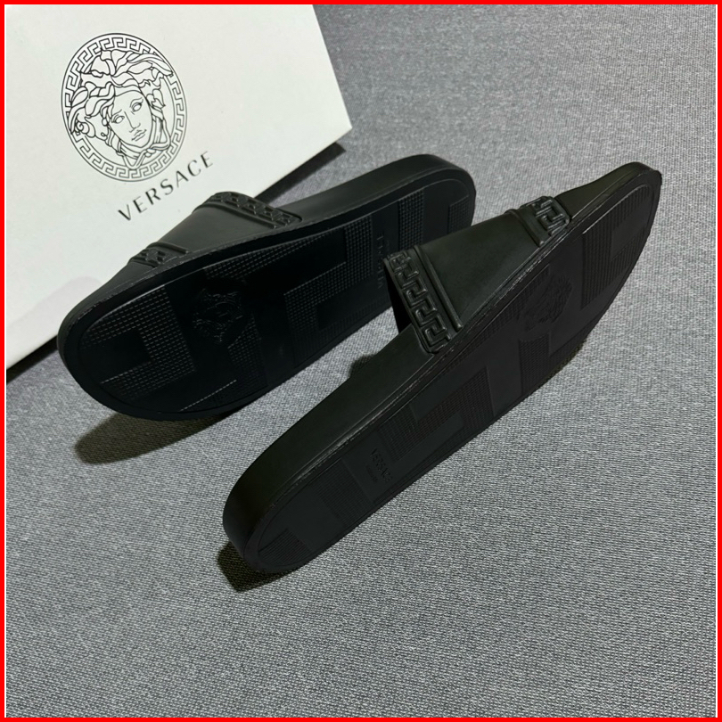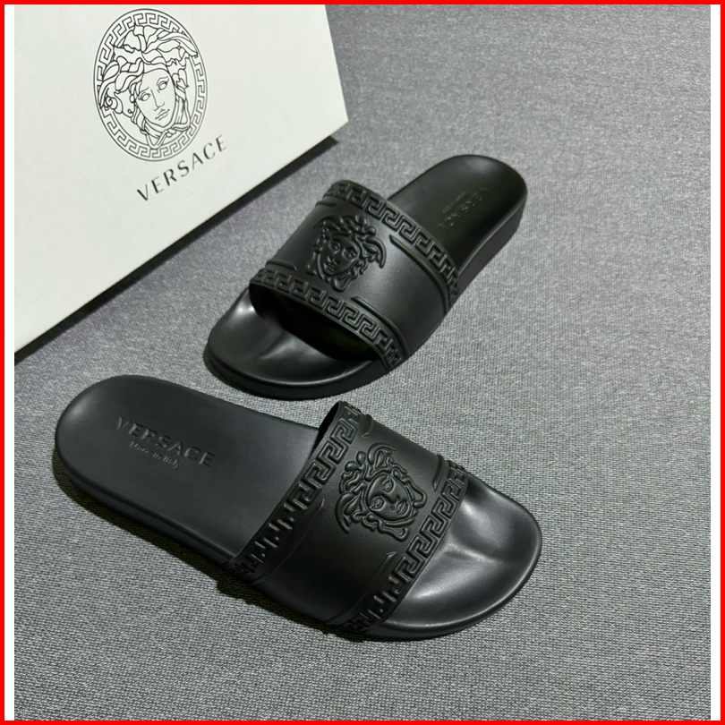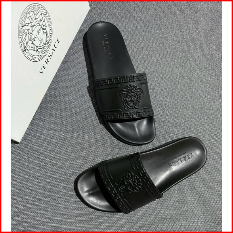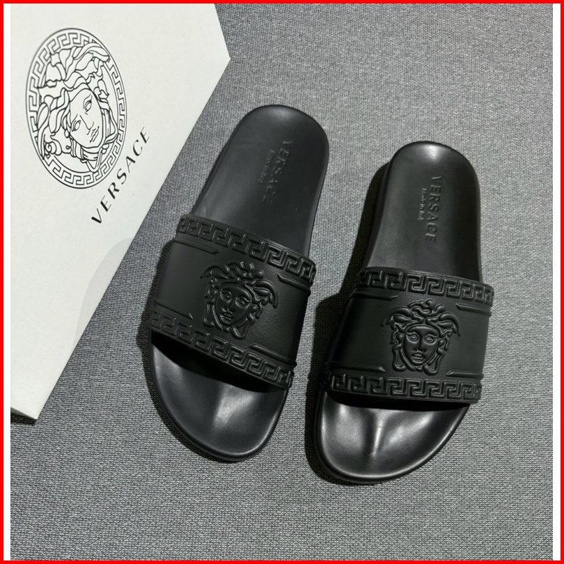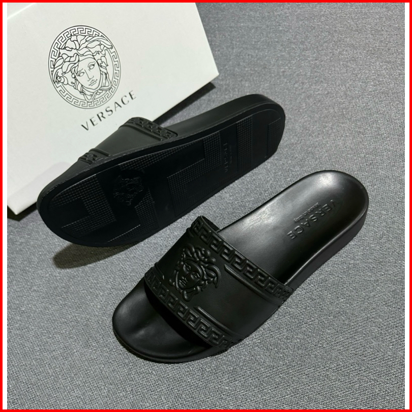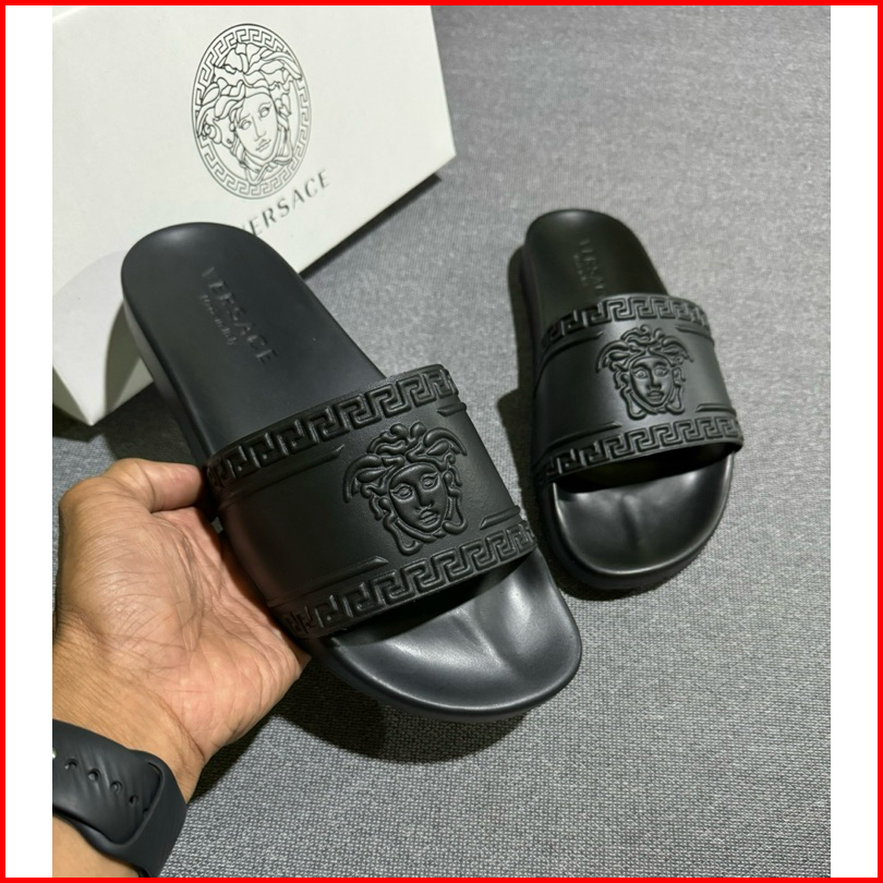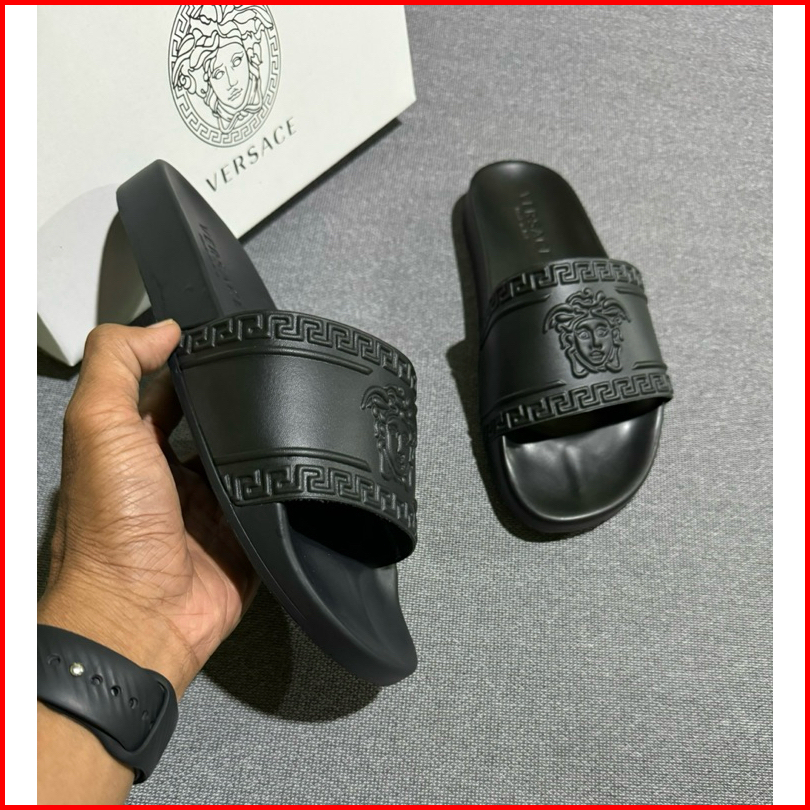 Sandal Slip On Premium Miror Sace Visual Logo Kepala Hitam Polos Motif Timbul Embos Fre Boxs
