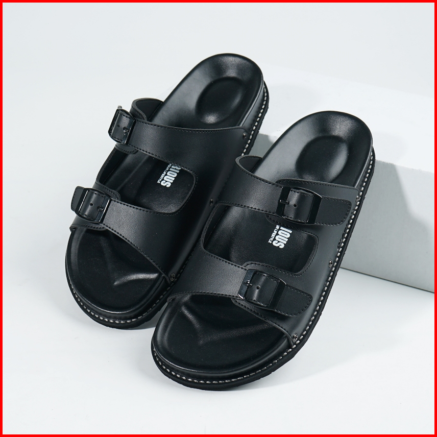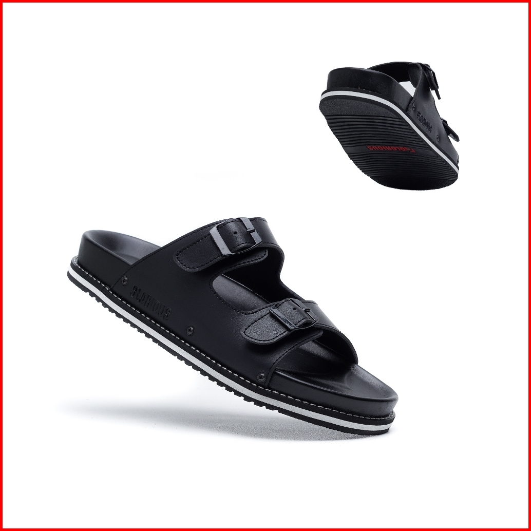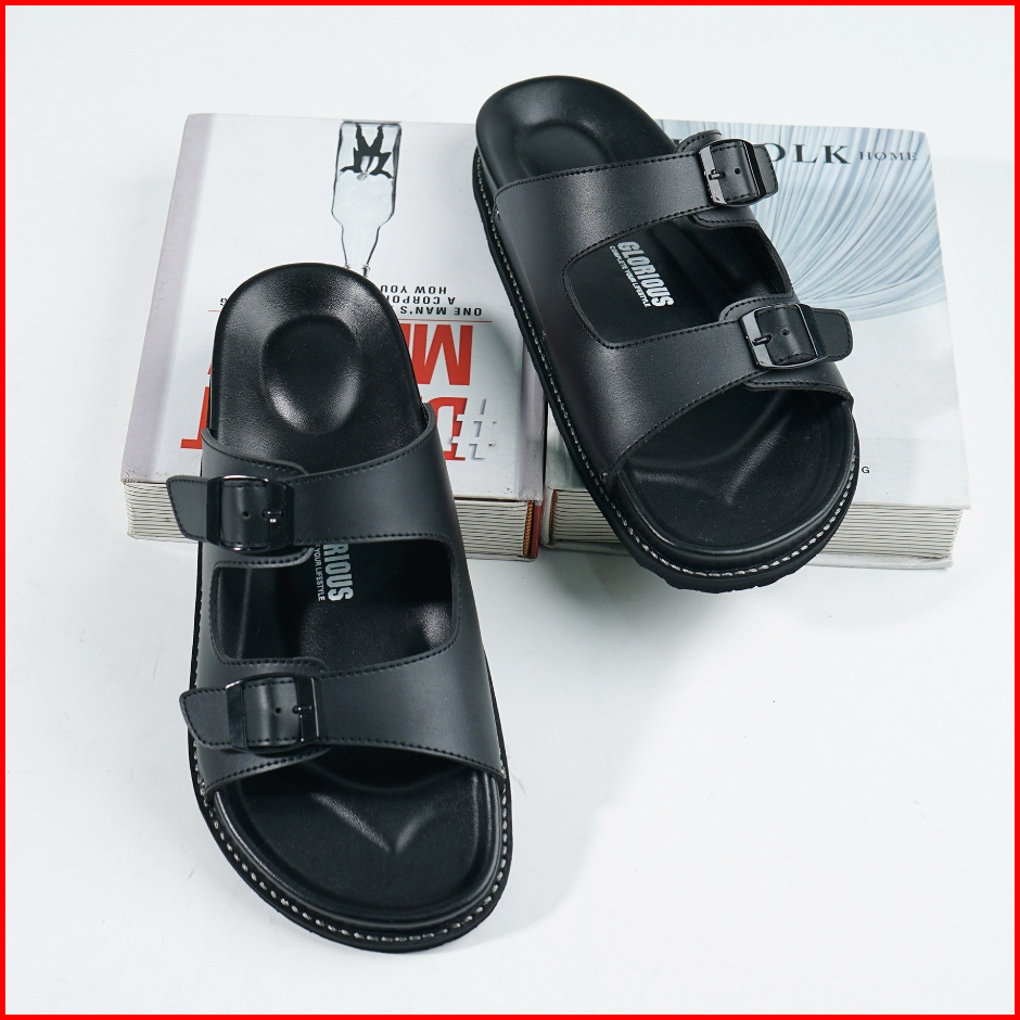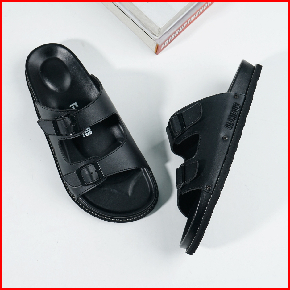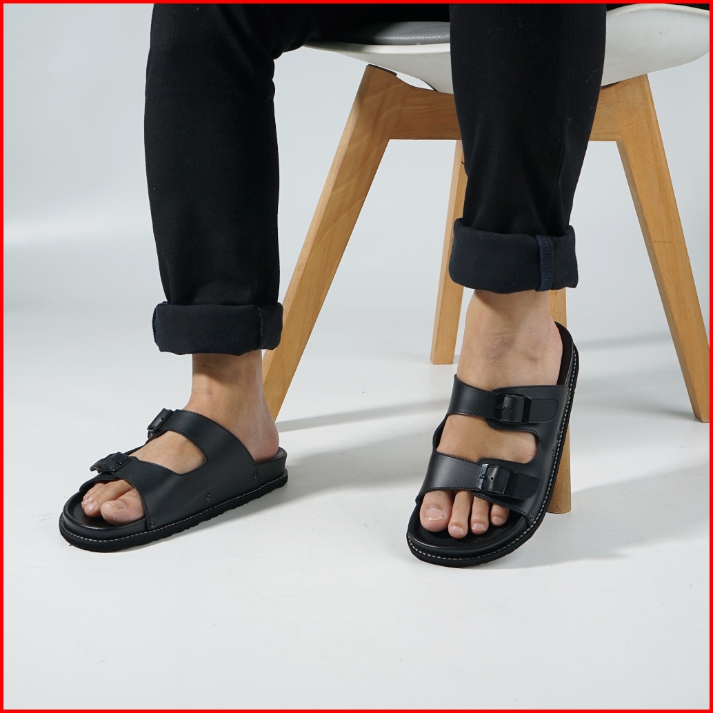 Glorious - Sage Strong Black Sandal Formal Casual Pria Wanita Kulit Slide Slop Distro Hitam Stylist