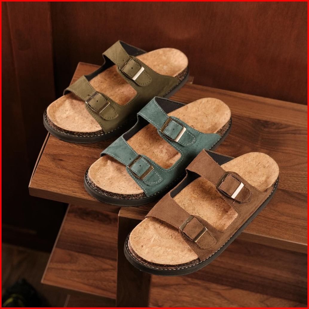 Sandal Pria - Jackson Suede Series Zoe Berlin - Sendal Footbed Birken Puyuh Slide Cowok
