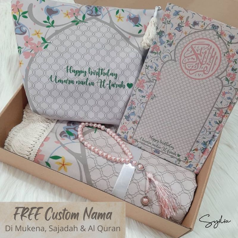 PAKET SESERAHAN / PERLENGKAPAN SHOLAT / MUKENA SAJADAH ALQURAN FREE CUSTOM NAMA