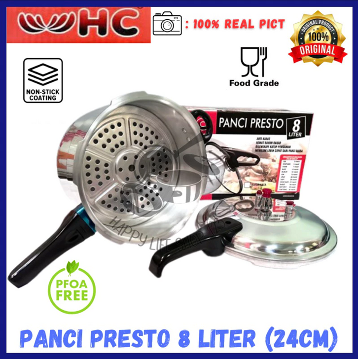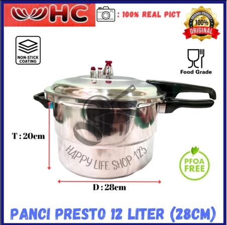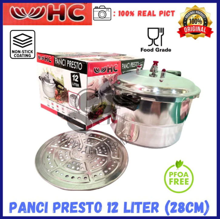 GRATIS ONGKIR- JUMBO Panci Presto 12 Liter/8 Liter/4L Pressure Cooker +Steamer /Kukusan 12 Liter HC- MOEGEN Happy Call