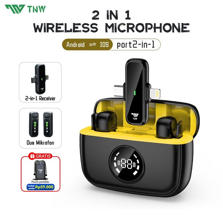 [Mall] Mic Wireless Clip On / TNW A13 Wireless Microphone 2-In-1 Clip On Mic Wireless Dual Lavalier Mikrofon