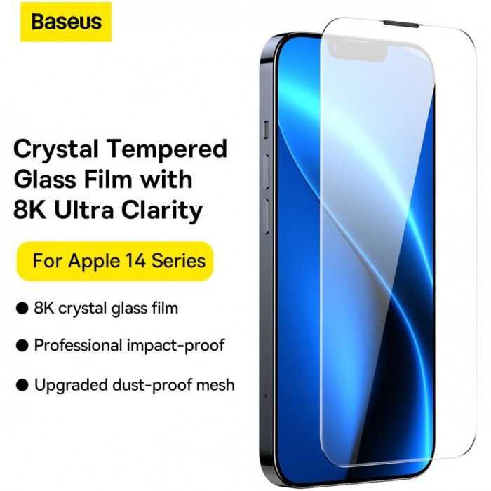 Baseus Clear Tempered Glass with Dust Proof for iPhone 14 - 14PLUS=13PROMAX