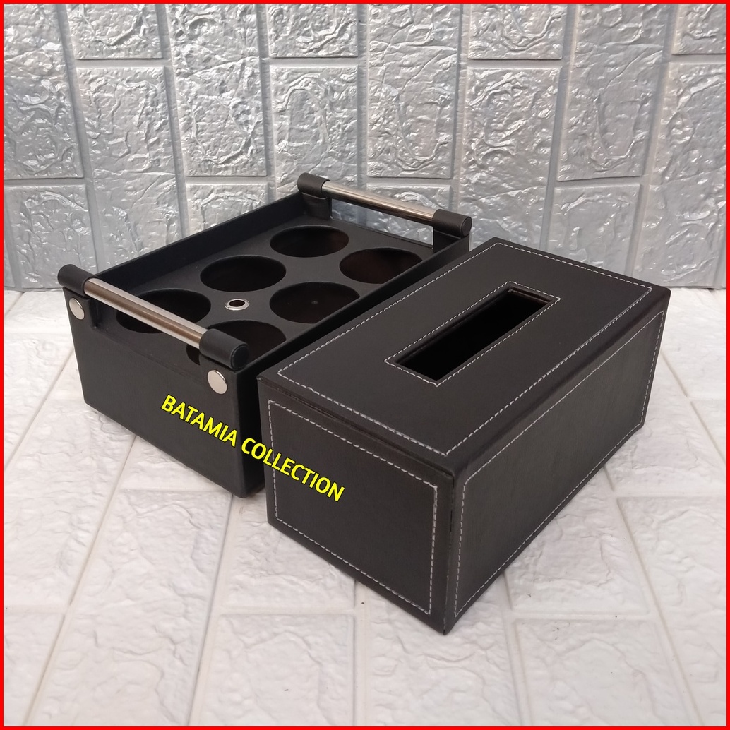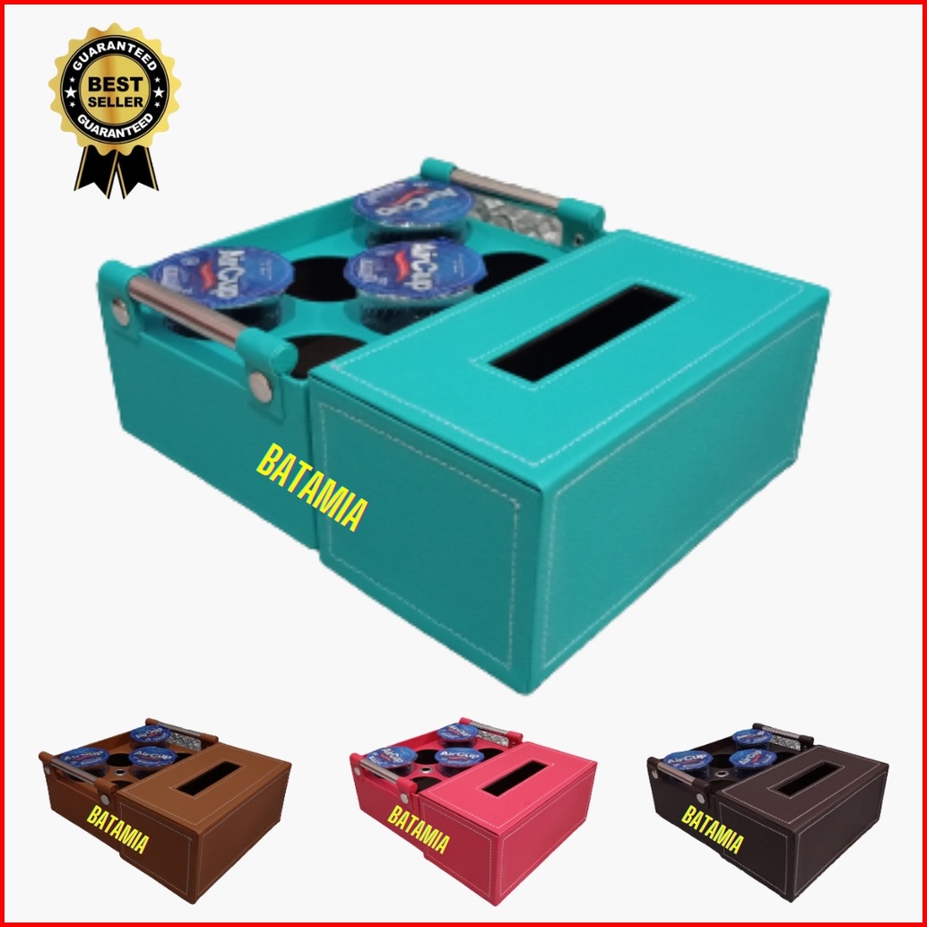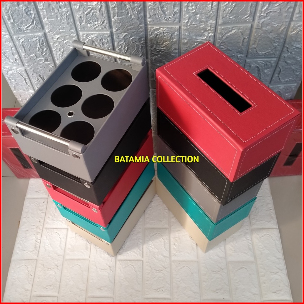Tempat Air Mineral Isi 6 Cup Wadah Tisu Kotak Tissue Kulit Sintetis Keranjang Aqua Gelas
