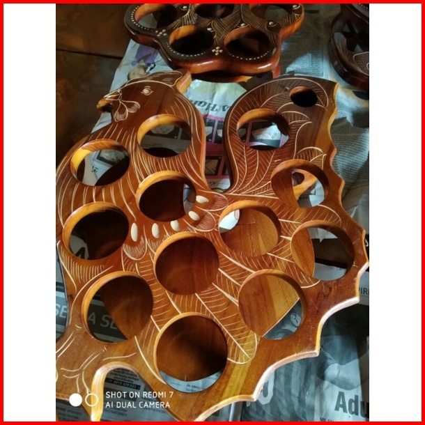 Tempat Aqua Gelas Kayu Jati Model Ayam