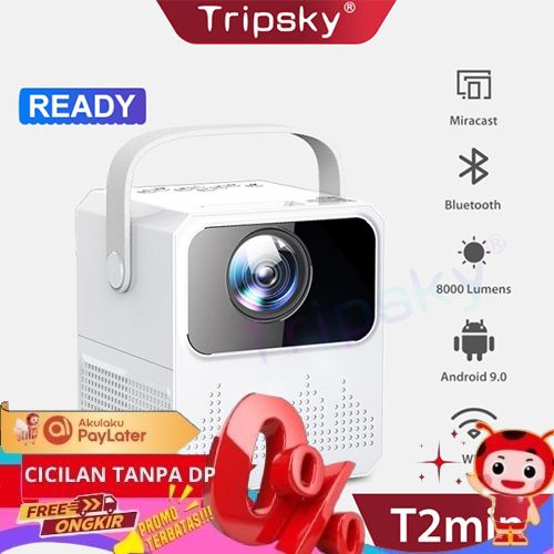 TERBARU SMART PROYEKTOR ANDROID WIFI MIRRORING HP PROJECTOR 120ANSI 6000 LUMEN - T2MINI