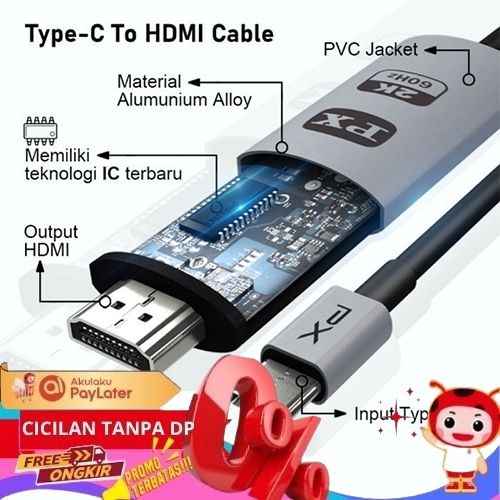 TERBARU PX MHA-30C KABEL MHL USB TYPE C TO HDMI TV PROYEKTOR CONVERTER 2M