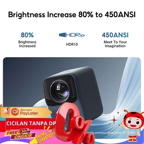 TERBARU WANBO NEW T2 MAX PROJECTOR 450 ANSI LUMENS 1080P DECODE 4K AI AUTO FOCUS - NEW T2 MAX