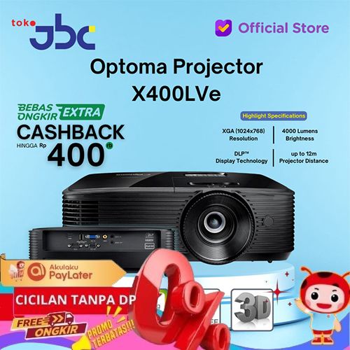 TERBARU PROJECTOR OPTOMA X400LVE DLP XGA TRUE 4000 ANSI LUMENS GARANSI 3 TH