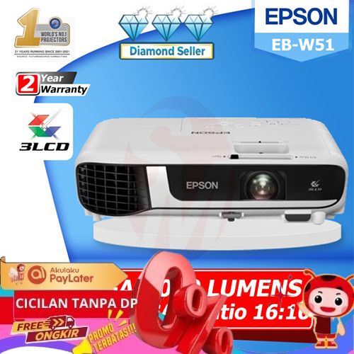 TERBARU PROJECTOR EPSON EB W51 WXGA 4000 LUMENS HDMI SUPPORT