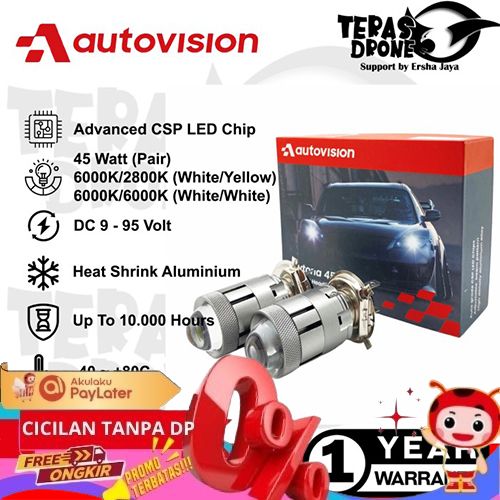 TERBARU LAMPU MINI PROJECTOR LED H4 AUTOVISION DAYTONA 45 WATT - DAYTONA 45WATT, PUTIH/PUTIH
