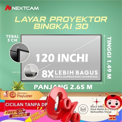 TERBARU NEXTCAM SCREEN PROJECTOR 120INCHI FRAME / LAYAR PROYEKTOR 120INCHI BINGKAI 3D BLACK DIAMOND HIGH QUALITY ALR/CLR